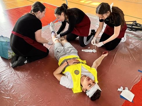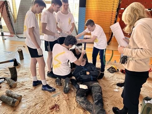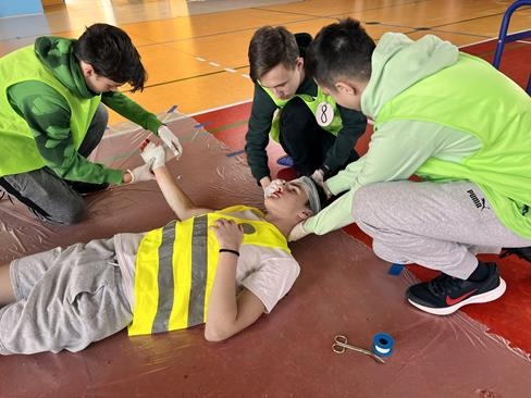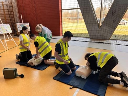 Pierwszy Dzień Wiosny w naszej szkole to także doroczne zawody z zakresu udzielania pierwszej pomocy, których organizatorem jest pan Andrzej Tyrkiel, a uczestnikami są uczniowie klas pierwszych. Najważniejszym celem tego przedsięwzięcia jest propagowanie właściwej postawy wobec różnych zdarzeń losowych, a co za tym idzie kształtowanie odpowiedzialności, umiejętności współpracy i kompetencji związanych z pierwszą pomocą.
