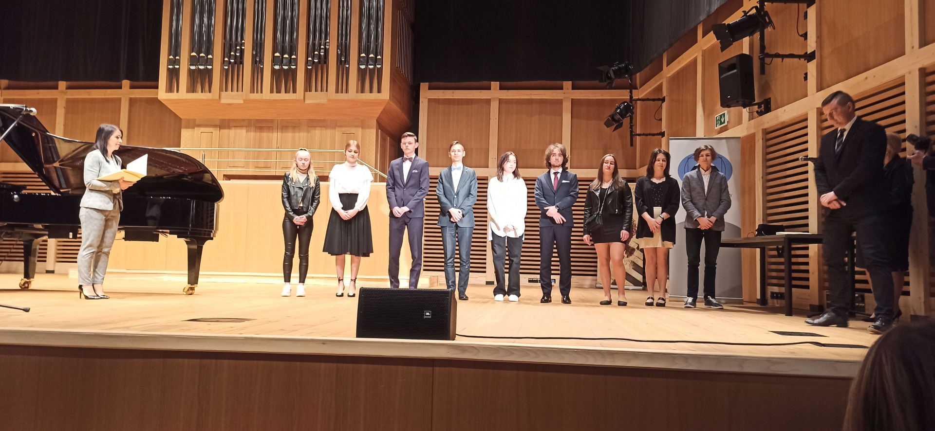 29 marca 2022 r. w pięknej sali koncertowej Zespołu Szkół Muzycznych w Tarnowie odbyła się uroczystość przekazania stypendiów Prezesa Rady Ministrów za najwyższe wyniki w nauce. Dyplomy wręczyła Małopolska Wicekurator Oświaty – Halina Cimer oraz Dyrektor Delegatury Kuratorium Oświaty w Tarnowie Łukasz Drewienkiewicz. Wśród laureatów byli także uczniowie Liceum Ogólnokształcącego im. M. Kopernika w Brzesku - Anna Żółtek i Jakub Milasz oraz Zespołu Szkół Technicznych i Branżowych - Anna Pudełko i Natalia Kozdroń. Serdecznie gratulujemy tego sukcesu!. Uroczystość uświetnił koncert uczniów Zespołu Szkół Muzycznych w Tarnowie.