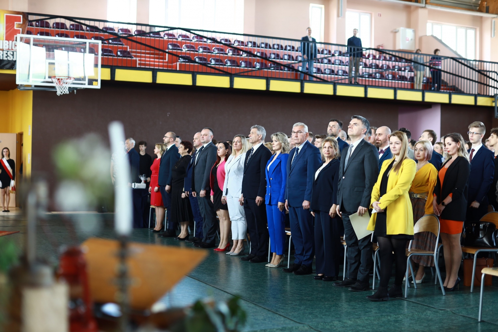 W piątek 29 kwietnia br. w Zespole Szkół Technicznych i Branżowych odbyło się uroczyste pożegnanie klas maturalnych. Kolejny rocznik zakończył edukację w naszej szkole, a grono absolwentów powiększyło się o 155 osób. W hali Zespołu zgromadzili się nauczyciele, rodzice, uczniowie oraz maturzyści. Wśród zaproszonych gości byli: Andrzej Potępa – Starosta Brzeski, Maciej Podobiński – Wicestrosta Brzeski, Janina Motak – dyrektor Wydziału Edukacji Starostwa Powiatowego w Brzesku, Michał Napieracz – dyrektor regionalny Carlsberg Polska Brzesko, Marcin Szymczyk - przedstawiciel SEP Tarnów oraz Piotr Słowiak - przewodniczący Rady Rodziców i Anna Mysińska – zastępca.