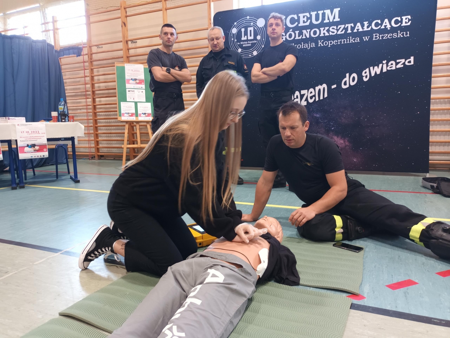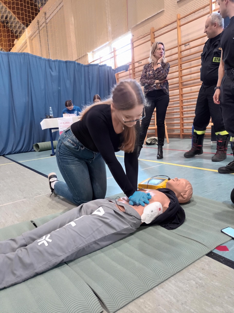 16 października obchodzimy Światowy Dzień Przywracania Czynności Serca. W związku z tym Liceum Ogólnokształcące im. M. Kopernika w Brzesku przyłączyło się do akcji organizowanej przez Małopolski Oddział Okręgowy PCK – Maraton RKO, który odbył się w poniedziałek 17 października 2022 r. Akcja polegała na przeprowadzeniu ciągłej resuscytacji krążeniowo-oddechowej na fantomie. Każdy z uczestników wykonywał uciśnięcia klatki piersiowej przez ok. 2 minuty, po czym był zmieniany przez kolejną osobę. Całość akcji nadzorowali funkcjonariusze Powiatowej Komendy Państwowej Straży Pożarnej w Brzesku, którzy udzielali uczestnikom fachowego wsparcia i pomocy oraz przekazali wiele wartościowych informacji z zakresu udzielania pierwszej pomocy przedmedycznej. Była to świetna możliwość zdobycia przez młodzież jakże ważnych umiejętności, które być może pomogą im w przyszłości uratować komuś życie. Dziękujemy strażakom- ratownikom za pomoc w przeprowadzeniu Maratonu a uczniom za zaangażowanie i udział w akcji.