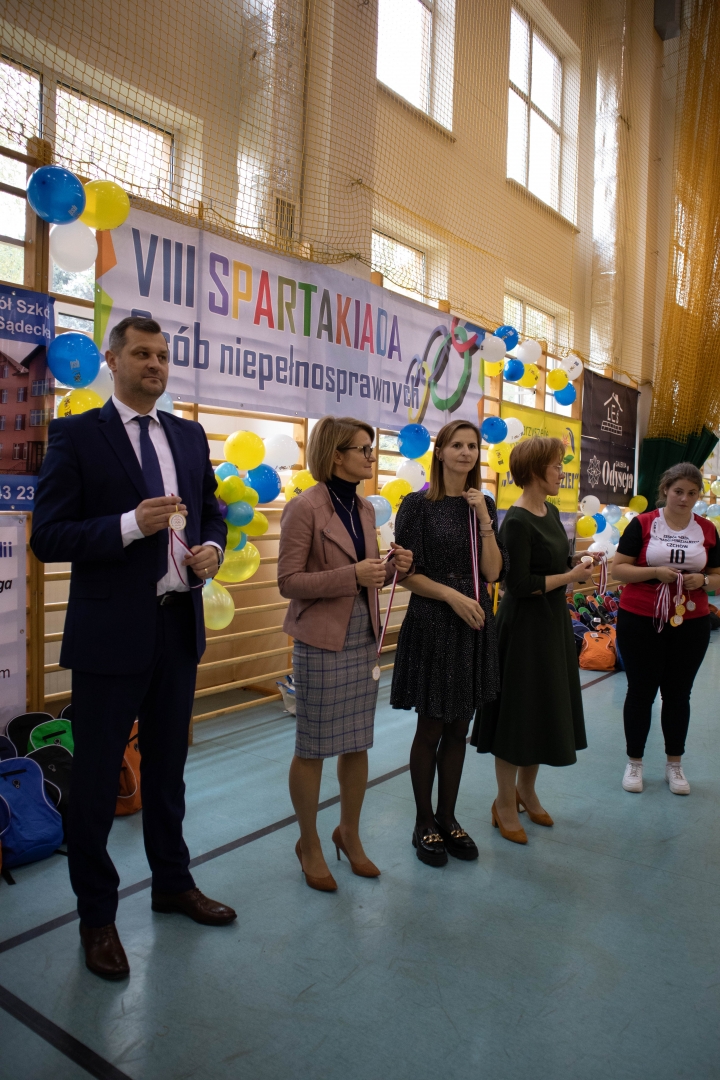 Wszyscy uczestnicy otrzymali złote medale z napisem „Super Sportowiec” i plecaki wypełnione słodyczami. Wszyscy otrzymali różne dodatkowe nagrody - gadżety reklamowe od sponsorów. W trakcie imprezy zadbano także o poczęstunek dla sportowców i gości. Uczestnicy częstowali się lodami Koral, kolorową watą cukrową oraz owocami. Chętnym animatorka malowała twarze, ręce i dłonie. Po raz kolejny okazało się, że Spartakiada to nie tylko aktywizowanie sportowe środowiska osób z niepełnosprawnością, ale przede wszystkim dzień integracji – wspólne zabawy, występy grup gimnastyczno-tanecznych, kolorowe baloniki… Żywiołowe reakcje, radość na twarzach uczestników, opinie gości, po raz kolejny utwierdziły nas w przekonaniu, że spotkanie było wielkim sukcesem. Nasz pomysł i praca zostały nagrodzone szczęśliwymi buziami uczestników. Dziękujemy wszystkim opiekunom, rodzicom, dyrektorom, kierownikom i wolontariuszom, którzy kolejny raz spisali się na medal!