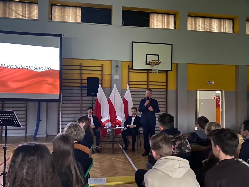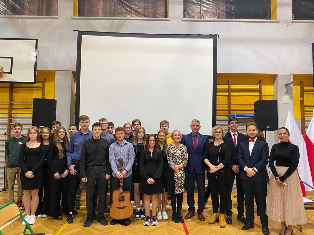 16 listopada odbyło się w Zespole Szkół Technicznych i Branżowych w Brzesku patriotyczne spotkanie z dużą porcją muzyki. Młodzież Zielonki zgromadziła się, aby wspólnie z zespołem muzycznym, pod kierunkiem pani Anny Rudnik zaśpiewać najbardziej znane pieśni patriotyczne. Scenariusz, który prowadził przez karty historii i spajał cały program przygotowała pani Agnieszka Dudek – Janicka.