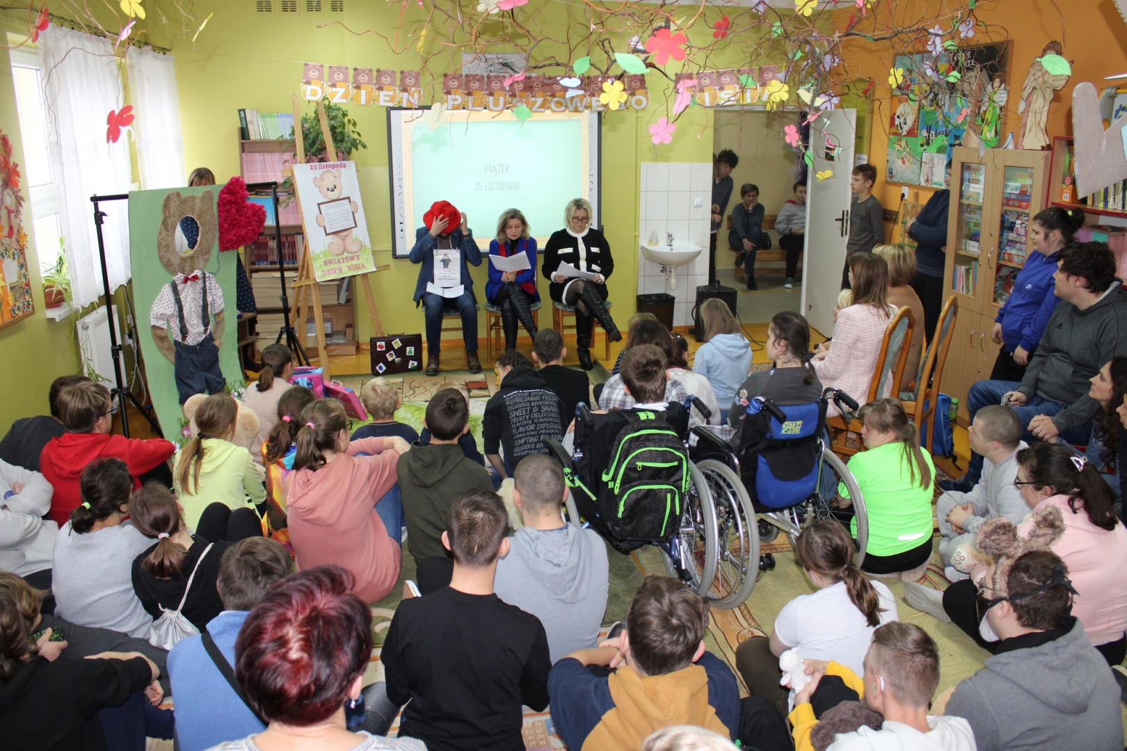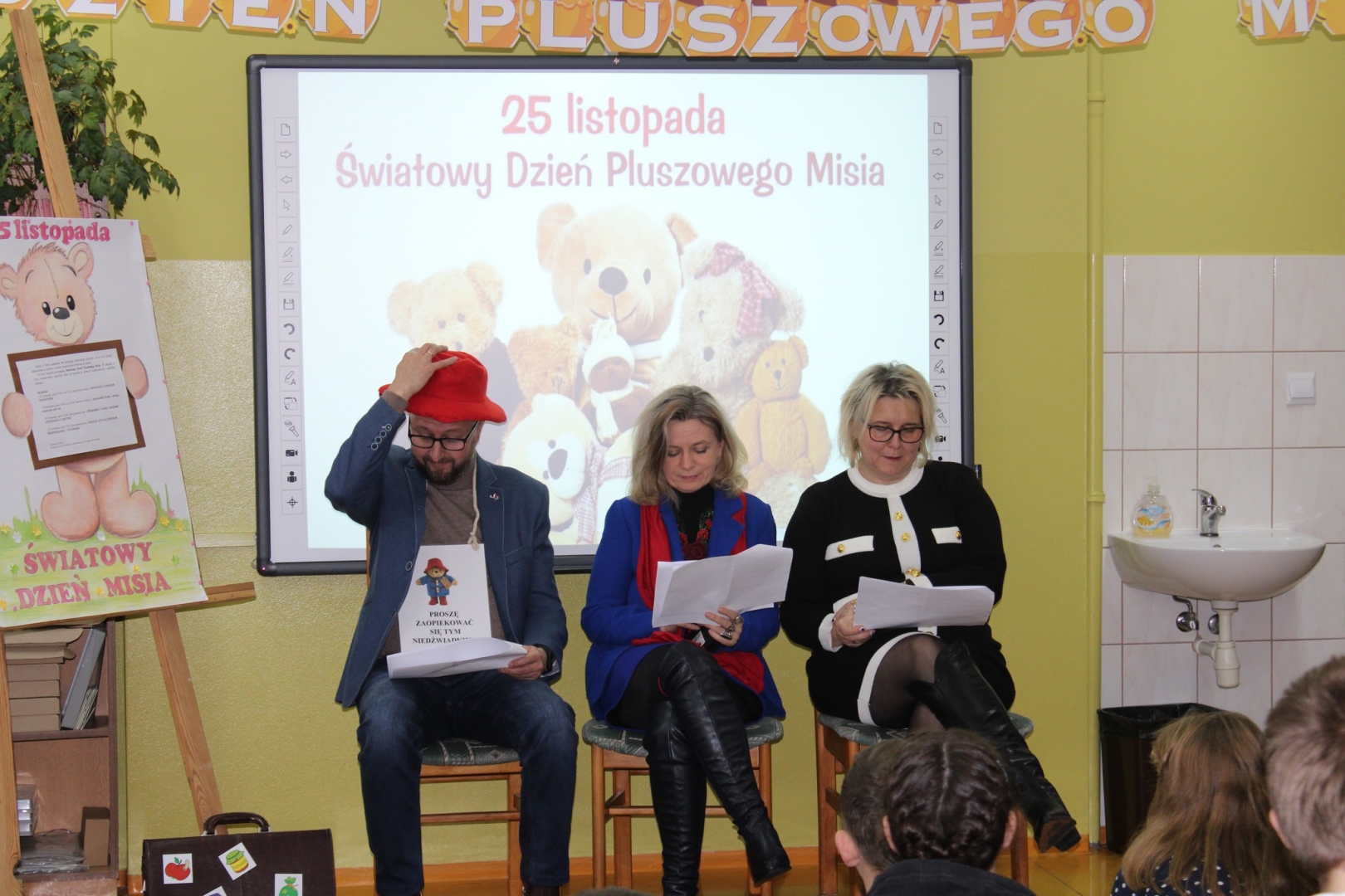 W kolejnym dniu „Piętrzaki z gestem” zaprosiły do wspólnych tańców i śpiewanek z miśkami. W piątek 25 listopada w Światowy Dzień Pluszowego Misia odbyło się finałowe spotkanie, podczas którego Rodzice zaprezentowali dzieciom fragment książki pt. „Miś, zwany Paddington”. Na zakończenie nasi uczniowie mogli zrobić sobie pamiątkowe zdjęcie w fotobudce z sympatycznym misiem.