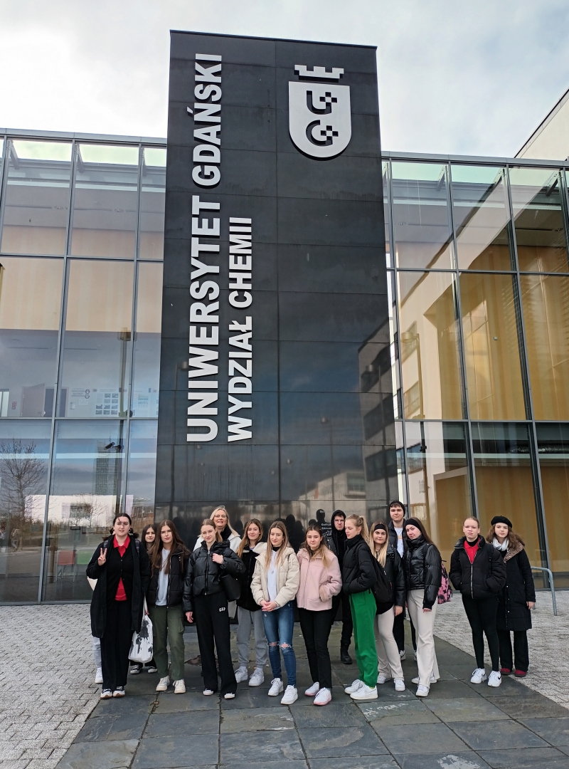 Przewodniczkami po Wydziale były studentki 5 roku skandynawistyki, w tym Weronika, absolwentka naszego Liceum, która aktywnie wspiera działalność Koła Przyjaciół Skandynawistyki Fiord działającego w szkole. Uczniowie uczestniczyli również w wielu pokazach na Wydziale Chemii, gdzie efektowne reakcje chemiczne przygotowane przez studentów i wykładowców robiły ogromne wrażenie. Spotkali się również z Prodziekan ds. Studenckich i Kształcenia dr hab. Jolantą Kumirską Profesor UG, która zachęcała do wyboru kierunków związanych z naukami chemicznymi. Nie mogło zabraknąć wizyty w niesamowitej Bibliotece Uniwersyteckiej, w której można było poczuć prawdziwą atmosferę naukową. Wizyta w Gdańsku nie byłaby również zaliczona bez zbierania muszelek na plaży oraz bez spaceru po gdańskiej Starówce.