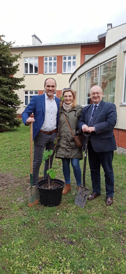Pan Dyrektor Tomasz Gurgul i pozostali pracownicy dołożyli wszelkich starań, abyśmy mogli bez przeszkód realizować nasze założenia. Ukoronowaniem pierwszej części wymiany polsko- niemieckiej było posadzenie drzewa przyjaźni na szkolnym dziedzińcu przez Pana Dyrektora Ryszarda Ostrowskiego, opiekuna grupy niemieckiej Pana Georga Buscha i opiekunki grupy polskiej Panią Dorotę Wodę.
