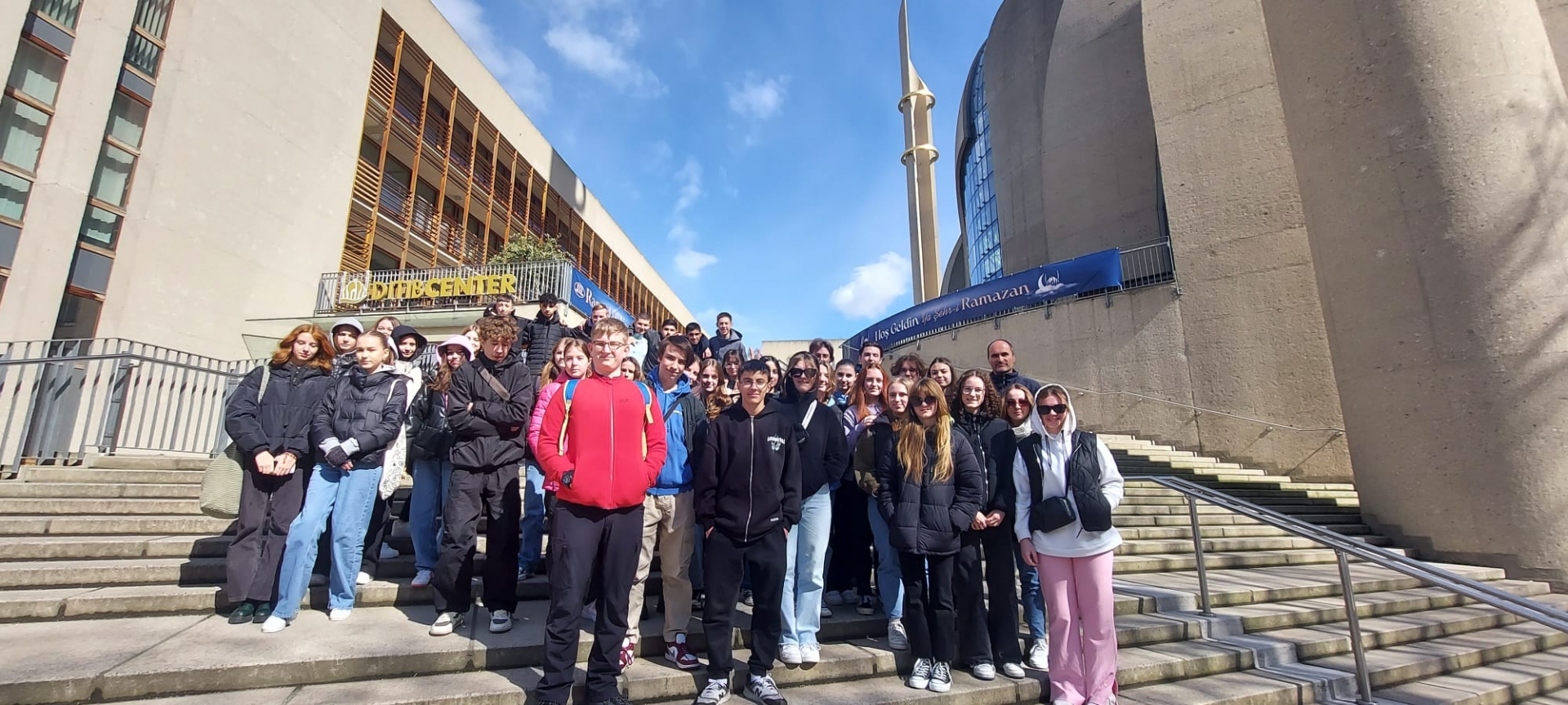 Drugi tydzień spędziliśmy wspólnie już jako goście w Kolonii. Na kolejne dni naszym domem stał się hostel położony w centrum miasta. Nasi gospodarze zadbali o bardzo ciekawy i różnorodny program, w którym znalazły się mi.in pobyt i zwiedzanie meczetu, Katedry Kolońskiej, udział w koncercie orkiestry symfonicznej w filharmonii, Koloński Ogród Zoologiczny, wycieczka do byłej stolicy Niemiec Zachodnich Bonn, zwiedzanie Kolonii w formie gry miejskiej, oraz wycieczka krajoznawcza poza miasto połączona ze zwiedzaniem ruin zamku Blankenberg. Niezwykle ciepło zostaliśmy przyjęci w szkole przez Panią Dyrektor Sabine Schumacher, która skierowała do nas kilka słów w języku polskimi przekazała na pamiątkę koszulki z logo tamtej szkoły. Nasza młodzież mogła również uczestniczyć w różnych lekcjach i zajęciach sportowych.