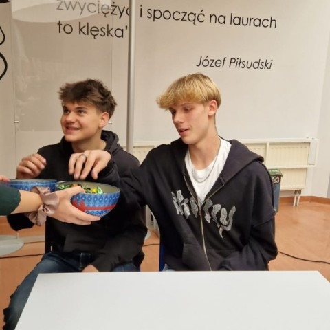 Zwycięzcy - uczniowie klasy 2 TL, otrzymali słodkie nagrody, pozostali uczestnicy – gromkie brawa.