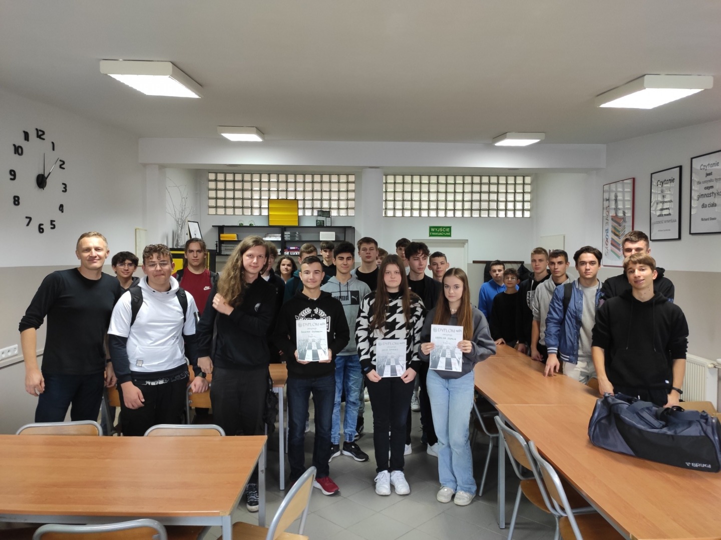 Dziękuję bardzo za udział wszystkim szachistkom i szachistom, za Wasze wzorowe zachowanie i sportową postawę przy szachownicy, a reprezentacji szkoły życzę jak najlepszych partii na Powiatowej Licealiadzie w szachach drużynowych, która odbędzie się już 13 listopada.