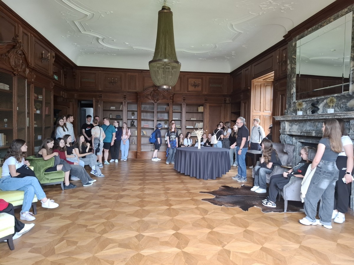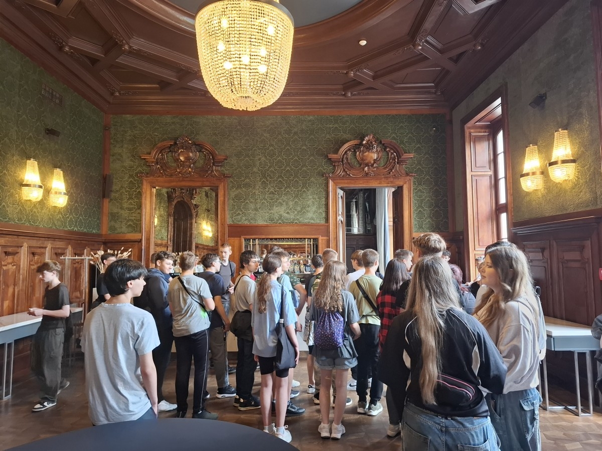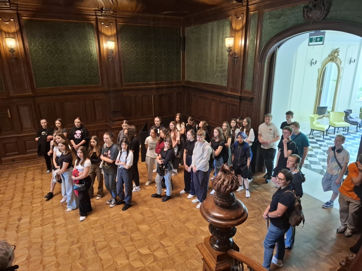 W dniu 11 czerwca 2024r. uczniowie klas pierwszych wraz z wychowawcami udali się na pieszą wycieczkę do Pałacu Goetza w Brzesku. W ramach nawiązanej współpracy oraz dzięki uprzejmości Pana Dyrektora Tomasza Florczyka mogli podziwiać piękne wnętrza Pałacu i zapoznać się z historią rodziny Goetzów.