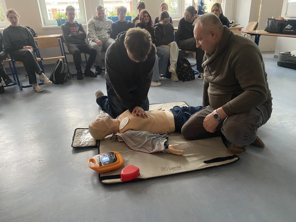 Oprócz wiedzy teoretycznej uczniowie mieli możliwość wykonywania wielu ćwiczeń w ramach pomocy przedmedycznej.