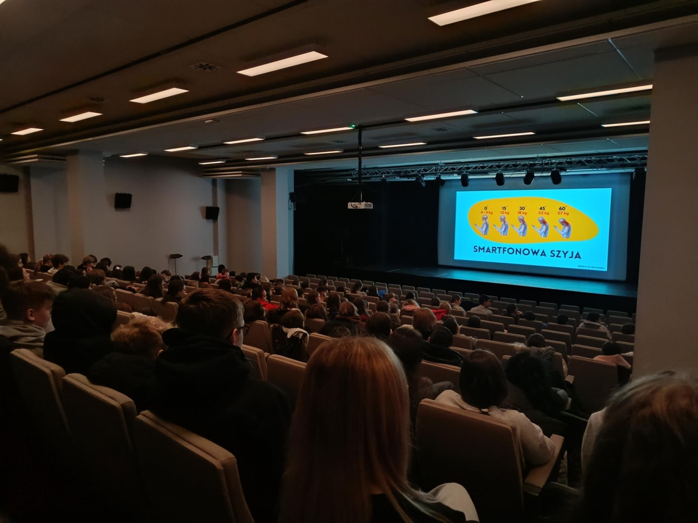 W czasie wykładu uczniowie mogli dowiedzieć się, jak social media wpływają na nasze życie, z czego często zupełnie nie zdajemy sobie sprawy. Dowiedzieli się także czym są zjawiska catfishingu, multitaskingu i prokrastynacji, ponadto prelegentka przedstawiła badania wskazujące na wysoki wskaźnik osób cierpiących z powodu FOMO (ang. Fear of missing out, pol. strach przed tym, co nas omija). W czasie wykładu omawiane zjawisko obrazowane było fragmentami filmów, wynikami badań i wypowiedziami specjalistów w tej dziedzinie Szczegolną uwagę zwrócono na tak bardzo popularny wśród młodzieży TikTok, którego krótkie, nieangażujące filmiki prowadzą do infantylizacji uwagi. Dowiedzieli się, ile czasu średnio w tym serwisie spędza jego użytkownik oraz jak często w czasie dnia zerkamy na nasze telefony komórkowe ( o zgrozo 200!). Kolejnym punktem spotkania była projekcja filmu „Il campione” (pol. „Mistrz”) w reż. Leonarda D'Agostiniego.