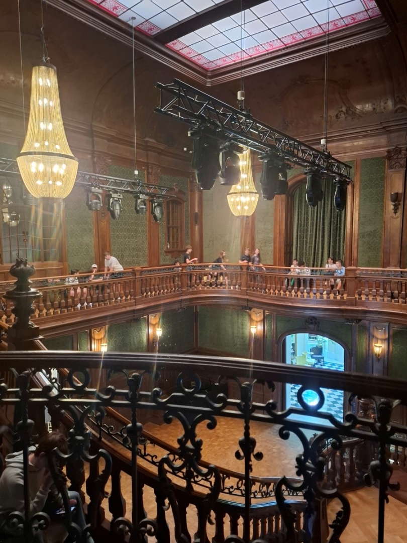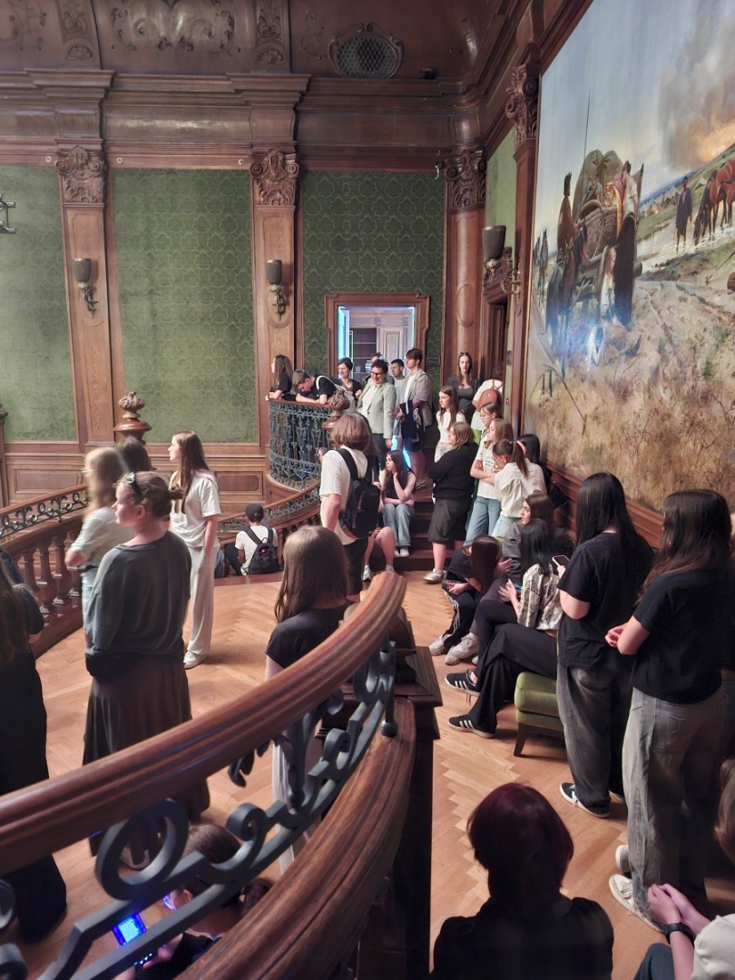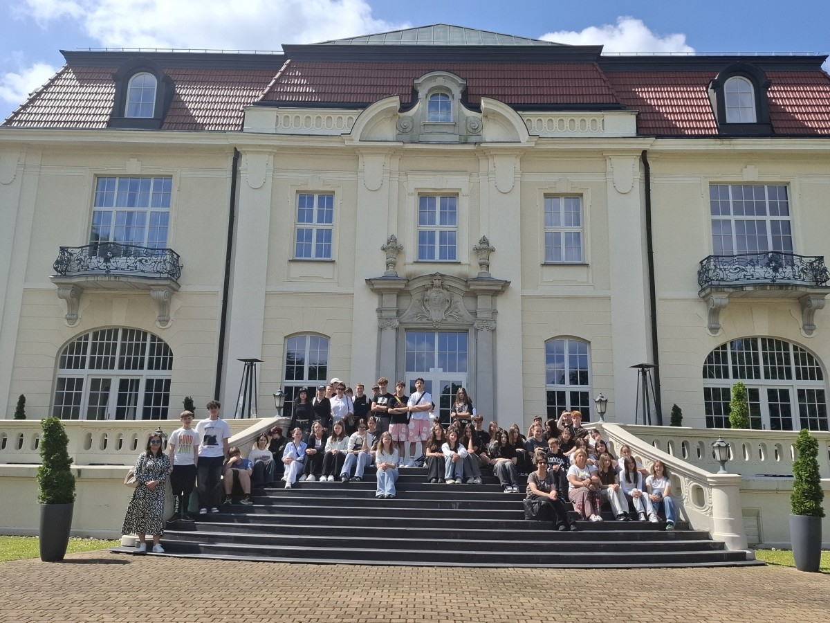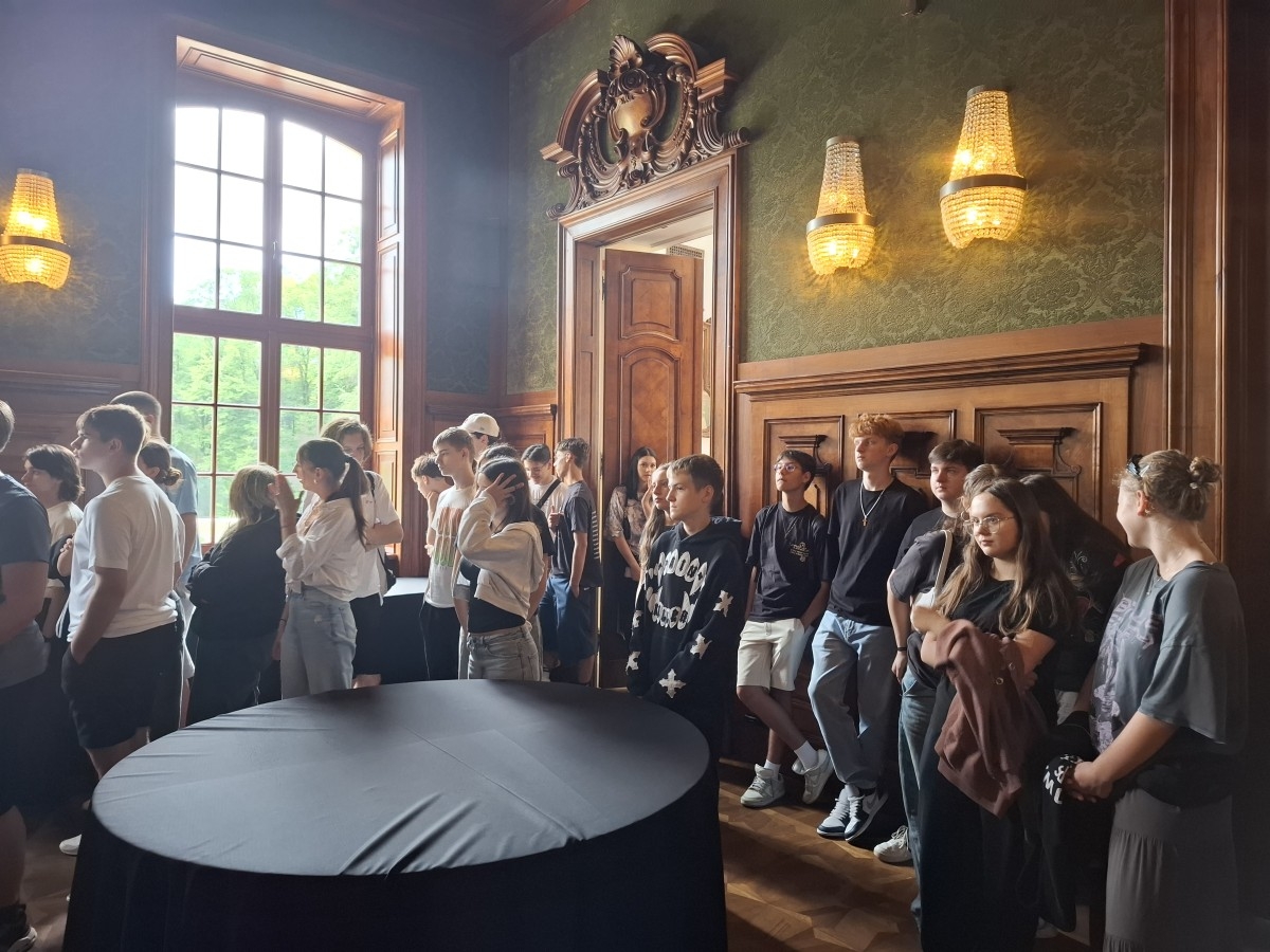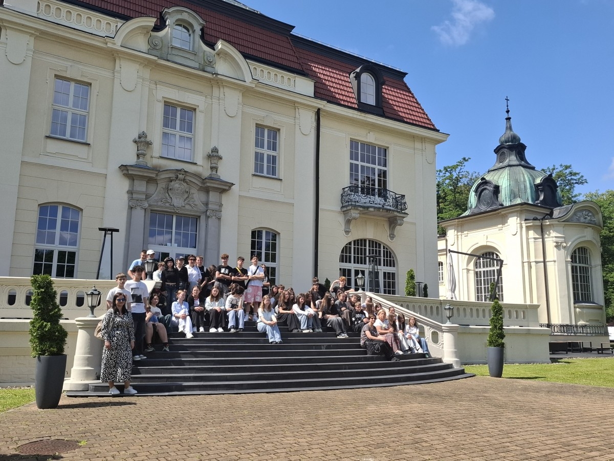 Dzięki nawiązanej współpracy oraz życzliwości Dyrektora Tomasza Florczyka mieli okazję zwiedzać zachwycające wnętrza Pałacu oraz poznać historię rodu Goetzów, który odegrał ważną rolę w dziejach Brzeska. W trakcie spaceru uczniowie odwiedzili również pobliski Pawilon oraz inne budynki należące niegdyś do rodziny Goetzów.