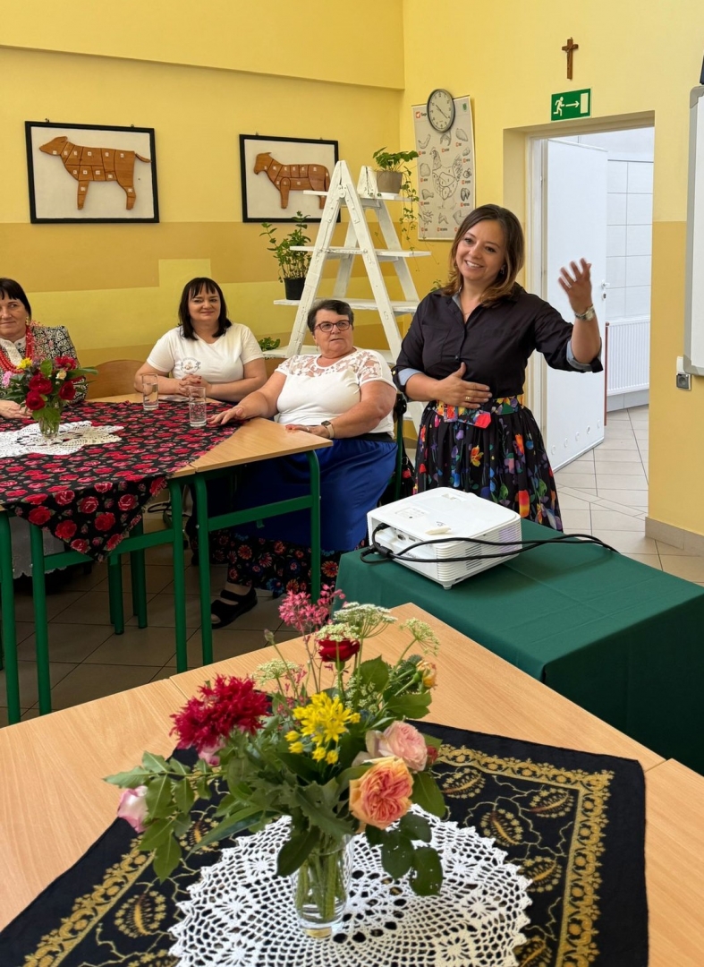 Dziękujemy także pracownikom Biblioteki Pedagogicznej w Brzesku za pomoc w odnajdywaniu cennych, często zapomnianych przepisów. Wasze zaangażowanie nadało naszej inicjatywie głębi i autentyczności. Pani Teresie Stanczykiewicz dziękujemy za obecność podczas podsumowujących warsztatów z Kołem Gospodyń Wiejskich – jej serdeczność, ciepło i zaangażowanie sprawiły, że spotkanie miało wyjątkową atmosferę.