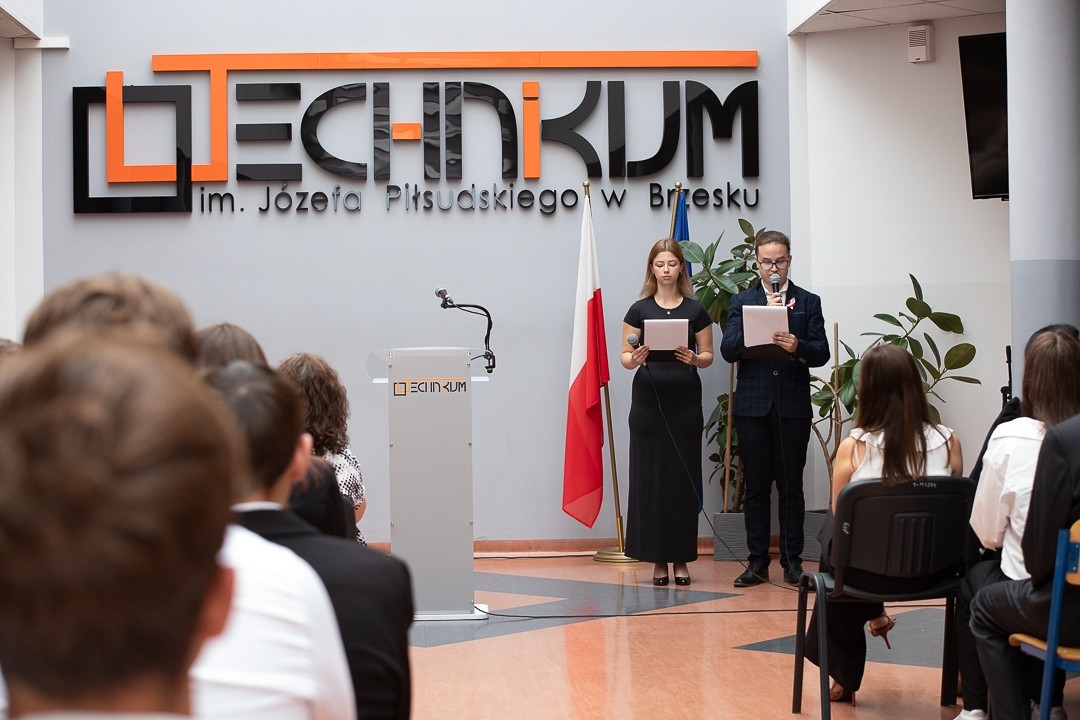Inauguracja roku rozpoczęła się Mszą świętą w kościele pw. Miłosierdzia Bożego. Później w szkolnej sali gimnastycznej zabrzmiał hymn i słowa, które dodają odwagi: „Nie musisz być wielki, aby zacząć, ale musisz zacząć, by być wielkim”. Dyrektor Dorota Jedlińska przypomniała, że szkoła jest miejscem, gdzie teoria spotyka się z praktyką, a pasja z konkretnym zawodem. – Każdy rok to nowa szansa, nowe cele, nowe historie do napisania – mówiła do uczniów. Na szkolnych korytarzach pojawiły się nowe twarze – pierwszoklasiści, którzy zaczynają przygodę w zawodach technik informatyk, ekonomista, fotograf, logistyk i reklamy. – To Wy piszecie teraz kolejny rozdział tej historii – podkreślała dyrektor, witając nowych uczniów w gronie społeczności szkoły. Dzisiejsze Technikum im. Józefa Piłsudskiego to placówka z nowoczesnym zapleczem – pracownie IT, studio fotograficzne, drukarki 3D i dostęp do profesjonalnych narzędzi dla przyszłych grafików i reklamowców. Współpraca z lokalnymi firmami sprawia, że młodzież nie tylko uczy się teorii, ale od pierwszych miesięcy oswaja realia rynku pracy. „Uczymy kompetencji, które pozwalają naszym absolwentom wejść w dorosłe życie bez kompleksów” – podkreślają nauczyciele.