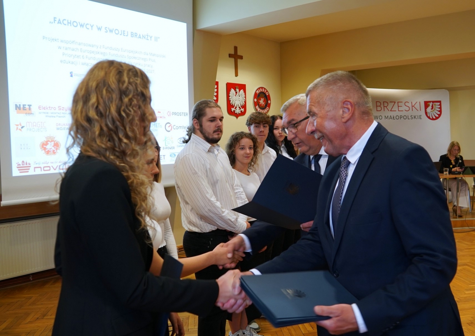 Projekt obejmuje szkoły z całego powiatu: Technikum im. Józefa Piłsudskiego i Zespół Szkół Technicznych i Branżowych w Brzesku oraz Zespół Szkół w Czchowie. W tych placówkach uczniowie uczą się podstaw, sprawdzanych i rozwijanych następnie w zakładach pracy. Na współpracy korzystają wszyscy: uczniowie zdobywają praktykę i pieniądze, przedsiębiorcy poznają przyszłych pracowników, a samorząd ma pewność, że inwestuje w rozwój lokalnego rynku. Całkowity budżet projektu wynosi ponad 5,2 mln zł. Z tego 85% pochodzi z Unii Europejskiej, 5% z budżetu państwa, a resztę – ponad pół miliona złotych – dokłada Powiat Brzeski. To środki, które mają sprawić, że młodzież będzie kształcić się „do pracy, a nie do Urzędu Pracy”, jak zauważył starosta Andrzej Potępa. Projekt „Fachowcy w swojej branży II” to coś więcej niż staże. To inwestycja w ludzi i w przyszłość całego regionu. A wręczone dyplomy to początek drogi, która ma prowadzić do dobrze płatnej i satysfakcjonującej pracy.