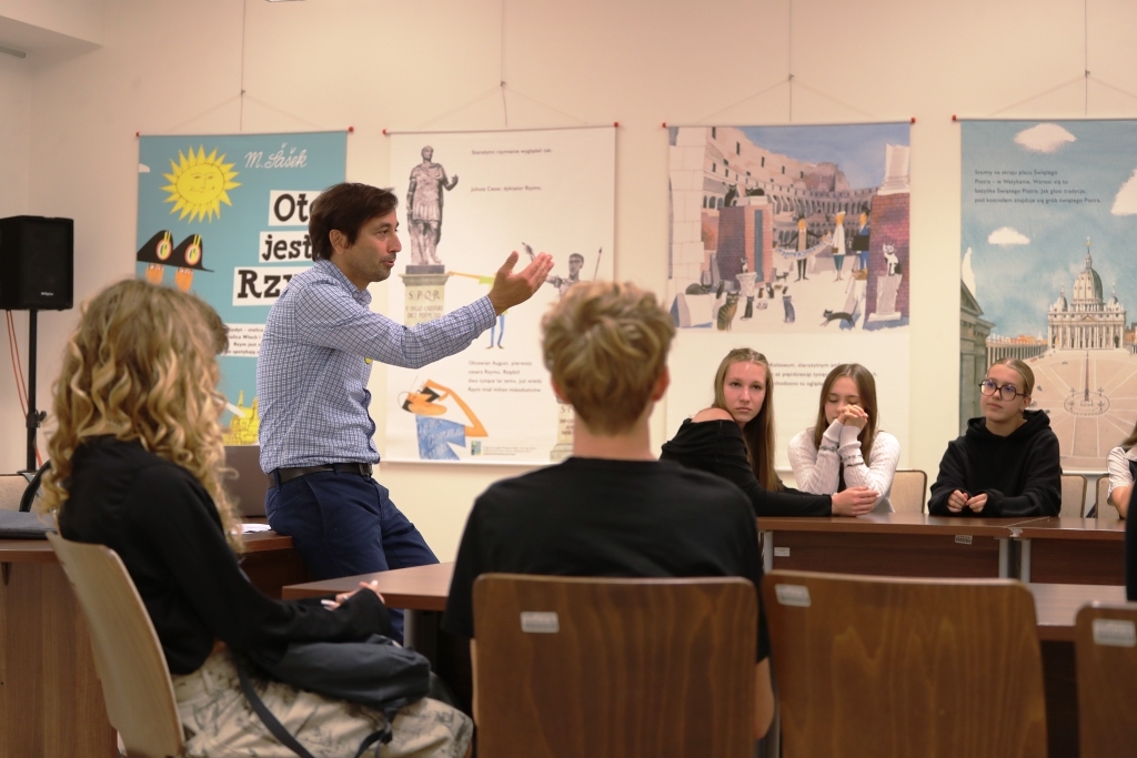 Inauguracyjny wykład poprowadził Adam Musiał. To przewodnik, tłumacz, edukator, od lat współpracujący z Yad Vashem, Shoah Foundation i największymi muzeami w Krakowie oraz Warszawie. Opowiadał nie tylko o faktach i datach, lecz o ludzkich losach, które kryją się za cyframi. W sali obecni byli uczniowie Liceum Ogólnokształcącego im. Mikołaja Kopernika oraz Technikum im. Bohaterów Westerplatte. Młodzież, dla której wojna brzmi jak odległa przeszłość, a jednak w słowach prelegenta znajdowała bolesną aktualność. Po wykładzie rozgorzała dyskusja. Padały pytania o to, jak pamiętać, by nie rozdrapywać ran, a jednocześnie nie zakłamywać prawdy. Jak mówić o krzywdzie, by nie rodziła nienawiści? Jak przekładać doświadczenie wojny na współczesne wyzwania? Adam Musiał odpowiadał cierpliwie, krok po kroku, otwierając przed uczniami przestrzeń do refleksji.