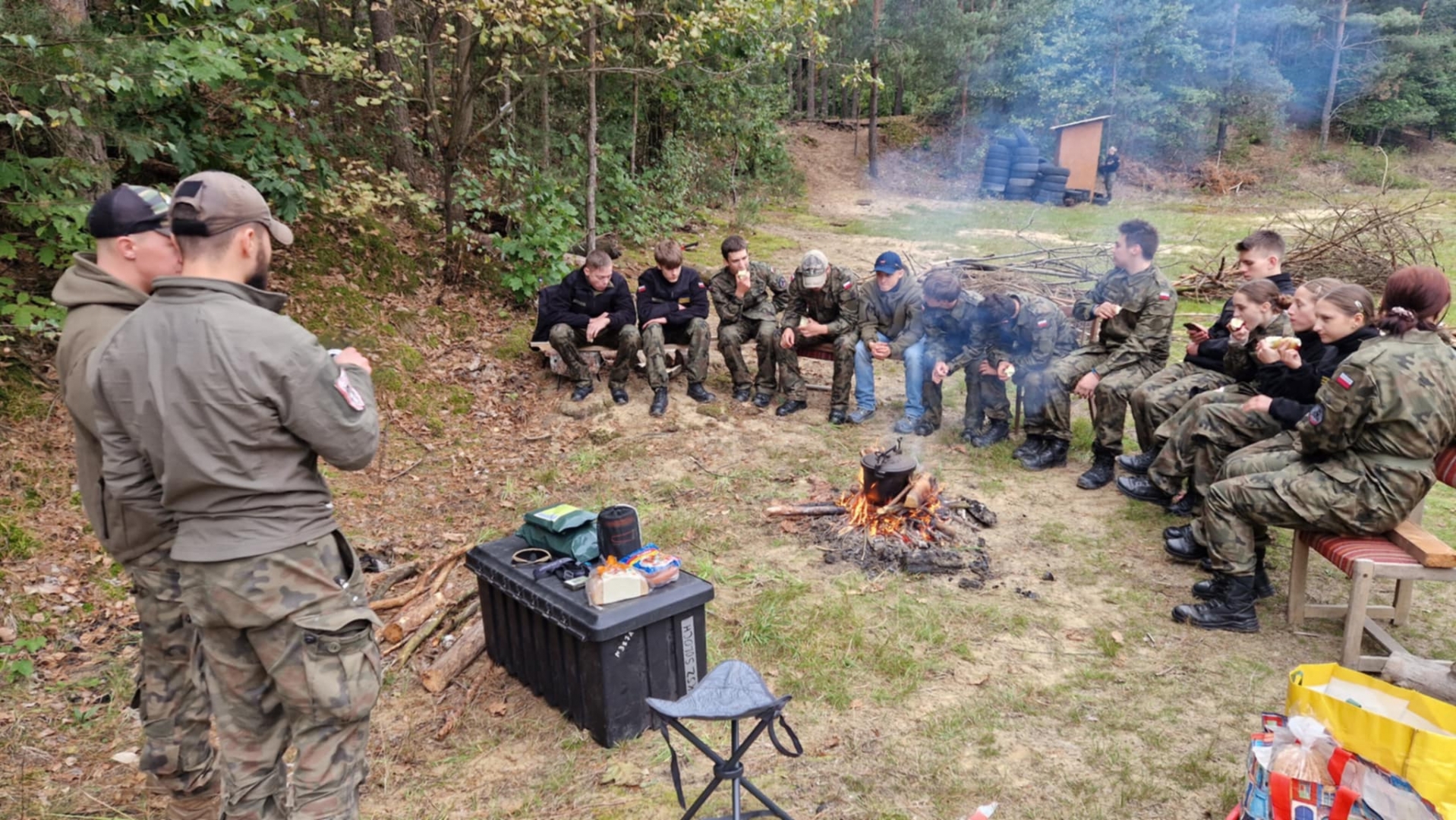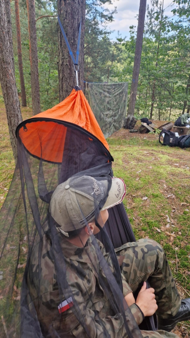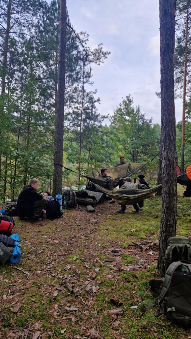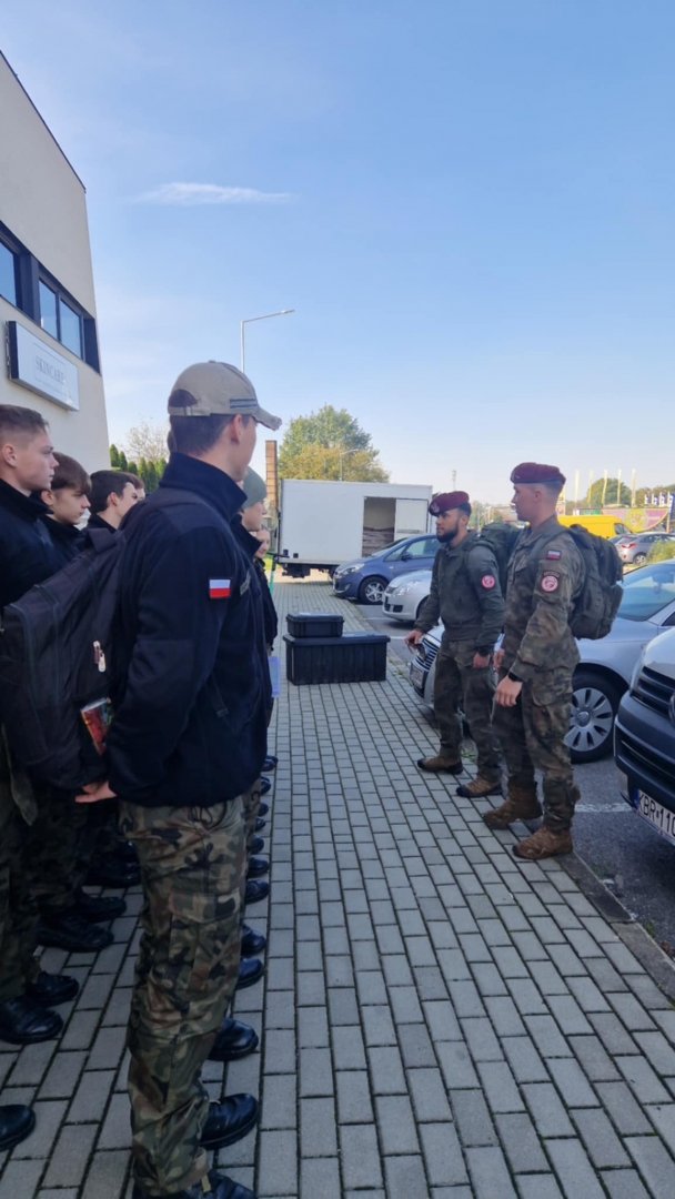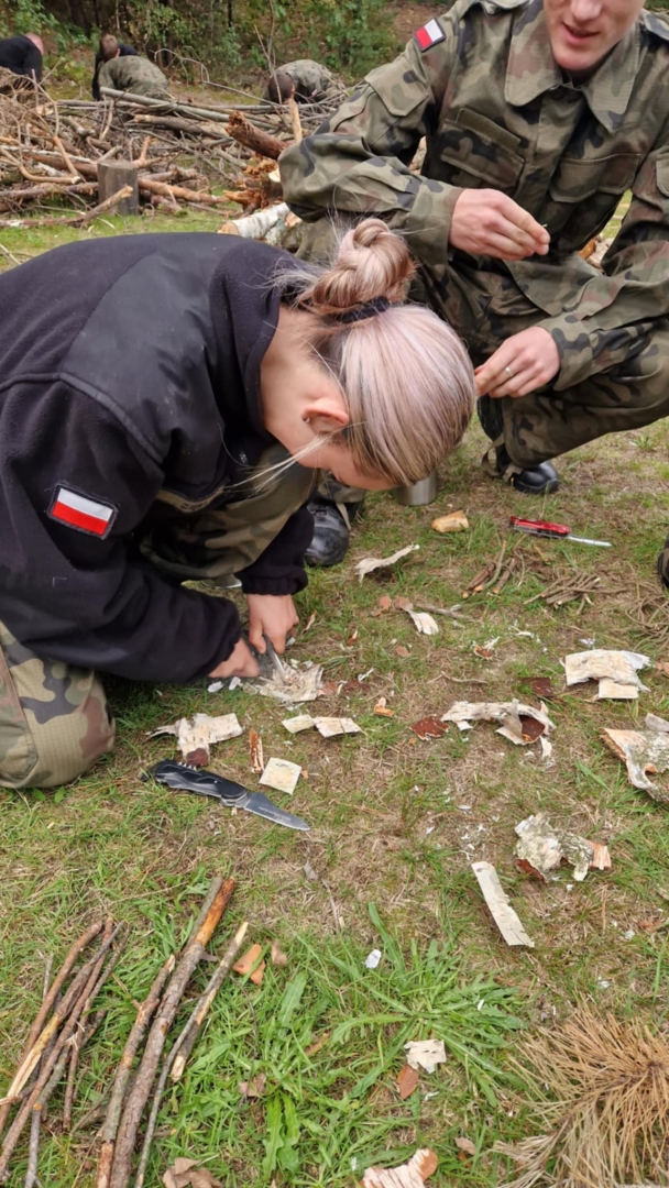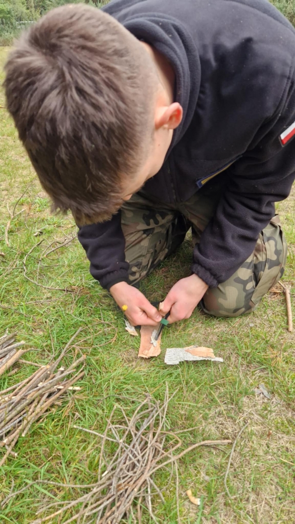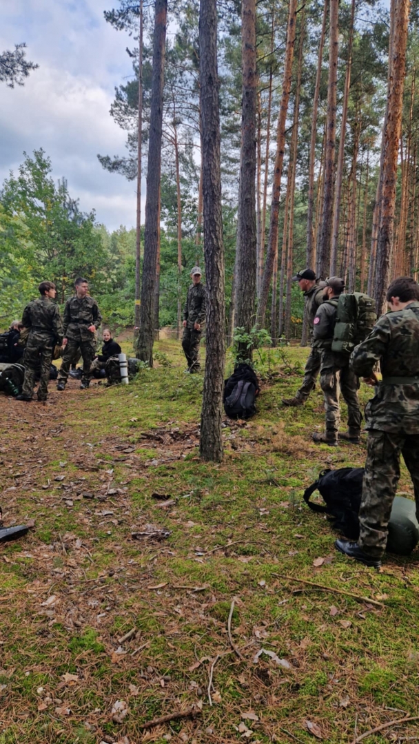 W dniach 3-4 października 2025 roku młodzież III klasy Oddziału Przygotowania Wojskowego uczestniczyła w obozie przetrwania. W programie szkolenia pod kierunkiem instruktorów z jednostki wojskowej XVI Batalionu Powietrzno- Desantowego w Krakowie był marsz kondycyjny z Brzeska do Bielczy 13 km z ekwipunkiem własnym, rozkładanie obozowiska w lesie, rozpalanie ognia za pomocą krzesiwa, z podtrzymaniem całonocnym ognia i pełnieniem warty. Tematyka zajęć zawierała również zasady udzielania pomocy medycznej na polu walki, zapoznanie z ekwipunkiem własnym żołnierza z kamizelką taktyczną, naukę posługiwania się aparatem noktowizyjnym z obserwacją terenu w ciemności. Elementy survivalu, które uczniowie musieli przyswoić to przygotowanie posłania z wykorzystaniem tarp, plandek i pałatek stanowiących prowizoryczne schronienie, z przygotowaniem podłoża z podściółki leśnej, liści i mchu. Wyżywienie uczestników stanowiła indywidualna racja żywnościowa żołnierza „S”, a także przygotowany na ogniu posiłek w kociołku. Uzupełnieniem była herbata zaparzona w garnuszku bezpośrednio na ogniu. Ponad 20 godzin spędzonych pod gołym niebem było swoistym egzaminem odporności fizycznej i psychicznej uczestników obozu. Ale „co nas nie złamie, to nas wzmocni”!:) Nas wzmocniło.
