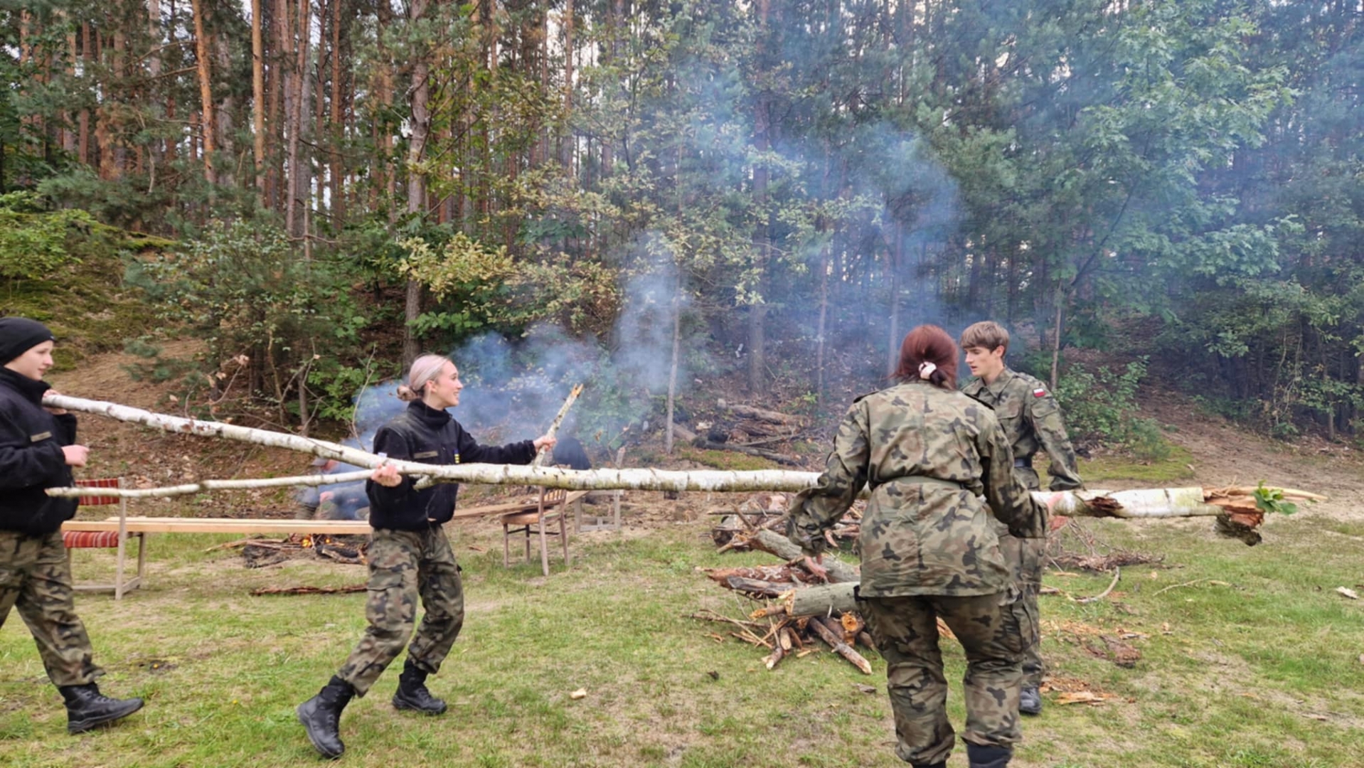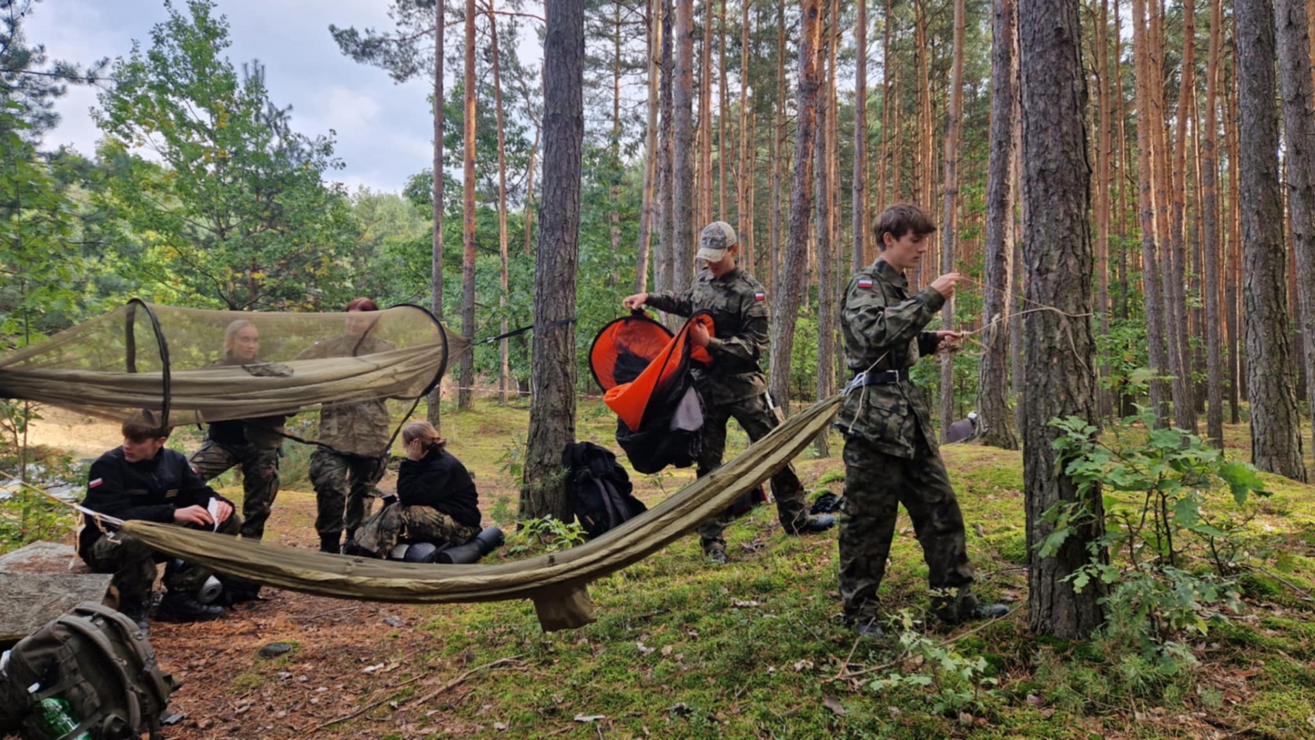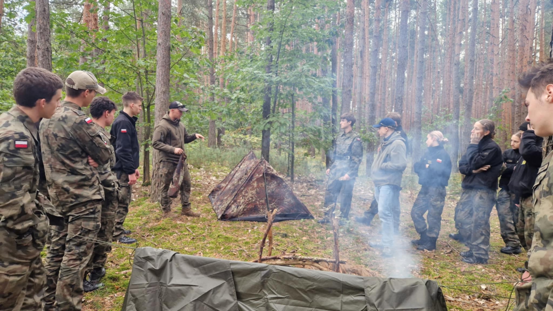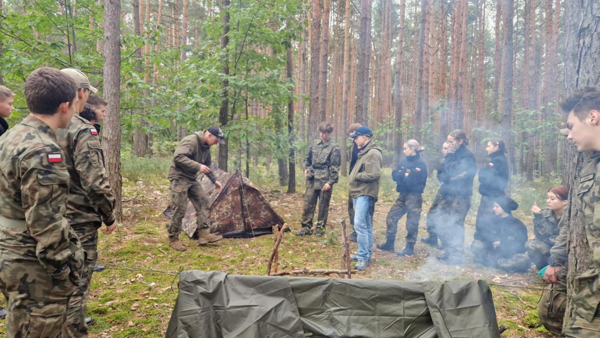 W dniach 3-4 października 2025 roku młodzież III klasy Oddziału Przygotowania Wojskowego uczestniczyła w obozie przetrwania. W programie szkolenia pod kierunkiem instruktorów z jednostki wojskowej XVI Batalionu Powietrzno- Desantowego w Krakowie był marsz kondycyjny z Brzeska do Bielczy 13 km z ekwipunkiem własnym, rozkładanie obozowiska w lesie, rozpalanie ognia za pomocą krzesiwa, z podtrzymaniem całonocnym ognia i pełnieniem warty. Tematyka zajęć zawierała również zasady udzielania pomocy medycznej na polu walki, zapoznanie z ekwipunkiem własnym żołnierza z kamizelką taktyczną, naukę posługiwania się aparatem noktowizyjnym z obserwacją terenu w ciemności. Elementy survivalu, które uczniowie musieli przyswoić to przygotowanie posłania z wykorzystaniem tarp, plandek i pałatek stanowiących prowizoryczne schronienie, z przygotowaniem podłoża z podściółki leśnej, liści i mchu. Wyżywienie uczestników stanowiła indywidualna racja żywnościowa żołnierza „S”, a także przygotowany na ogniu posiłek w kociołku. Uzupełnieniem była herbata zaparzona w garnuszku bezpośrednio na ogniu. Ponad 20 godzin spędzonych pod gołym niebem było swoistym egzaminem odporności fizycznej i psychicznej uczestników obozu. Ale „co nas nie złamie, to nas wzmocni”!:) Nas wzmocniło.