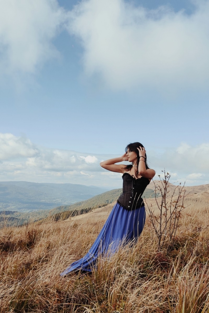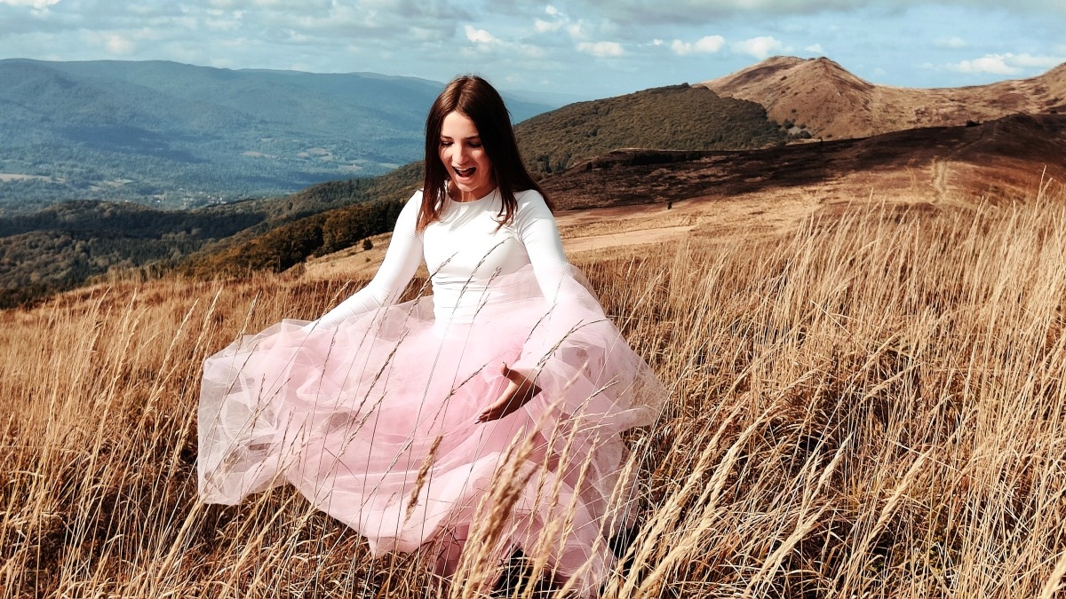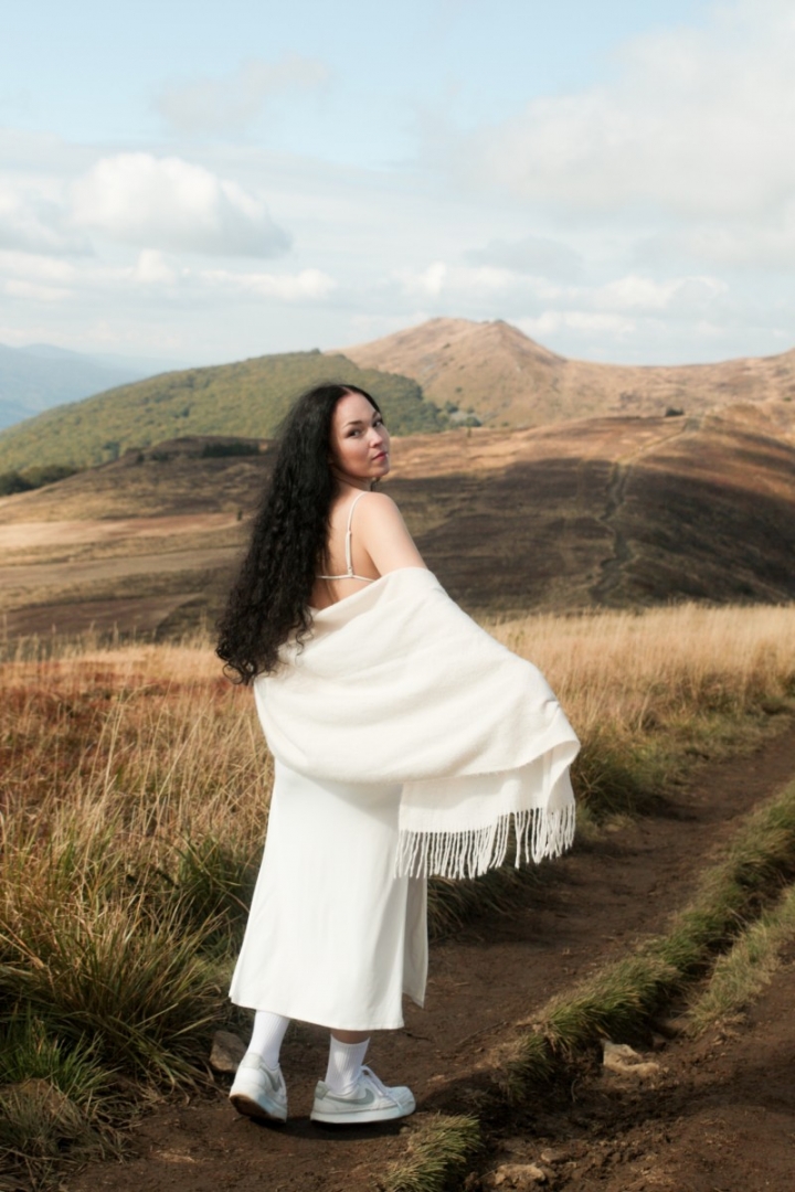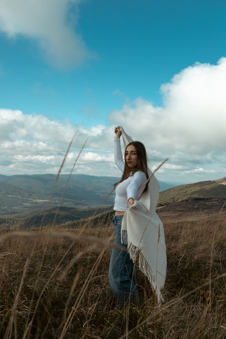 Trasa wiodła przez bieszczadzkie ścieżki aż po grzbiet połoniny, skąd rozpościera się panorama na pasma Smereka i Caryńskiej. Pogoda dopisała: czyste niebo, ciepły wiatr i jesienne słońce, które zamieniało złote trawy w naturalny reflektor. – To światło nie potrzebuje filtrów ani studia – żartowali uczniowie, ustawiając koleżanki i kolegów w surowym, ale niezwykle plastycznym krajobrazie. W obiektywach pojawiły się portrety w stylu retro, zdjęcia stylizowane na epokę wojenną, a także delikatne, pełne ruchu kadry w zwiewnych sukniach. Każde zdjęcie tworzy małą opowieść. O człowieku w przestrzeni, o kolorze, o czasie, który zatrzymuje się na ułamek sekundy.