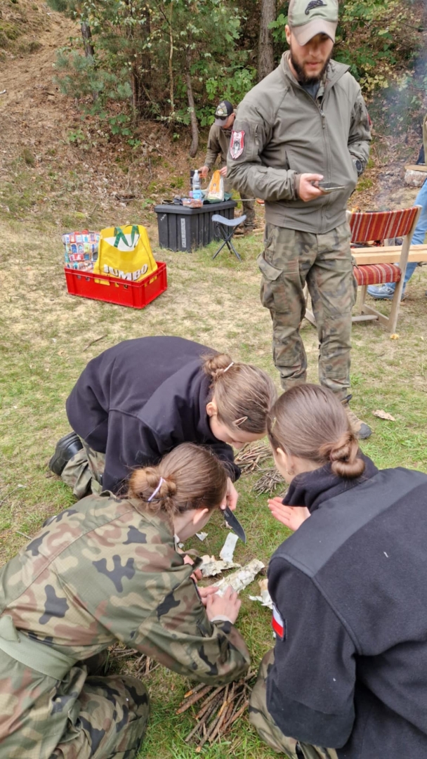 To nie była wycieczka, lecz poligon charakteru. Wyruszyli z Brzeska, by po 13 kilometrach marszu kondycyjnego z pełnym ekwipunkiem dotrzeć do lasów w Bielczy. Tam, w półmroku i chłodzie, zaczęła się lekcja nauki tego, jak przetrwać, współpracować i ufać sobie nawzajem. Uczniowie rozkładali obozowisko, rozpalali ogień krzesiwem i pilnowali go przez całą noc, pełniąc warty niczym prawdziwi żołnierze. W programie znalazły się też zajęcia z medycyny pola walki, nauka posługiwania się aparatem noktowizyjnym oraz zapoznanie z elementami ekwipunku wojskowego, od kamizelek taktycznych po plecaki desantowe. W części survivalowej młodzież uczyła się budowania prowizorycznych schronień z plandek i pałatek, przygotowywania posłań z mchu i liści oraz przyrządzania posiłków na otwartym ogniu. W menu były: żołnierska racja żywnościowa „S”, kociołkowy gulasz i herbata zaparzona w menażce.