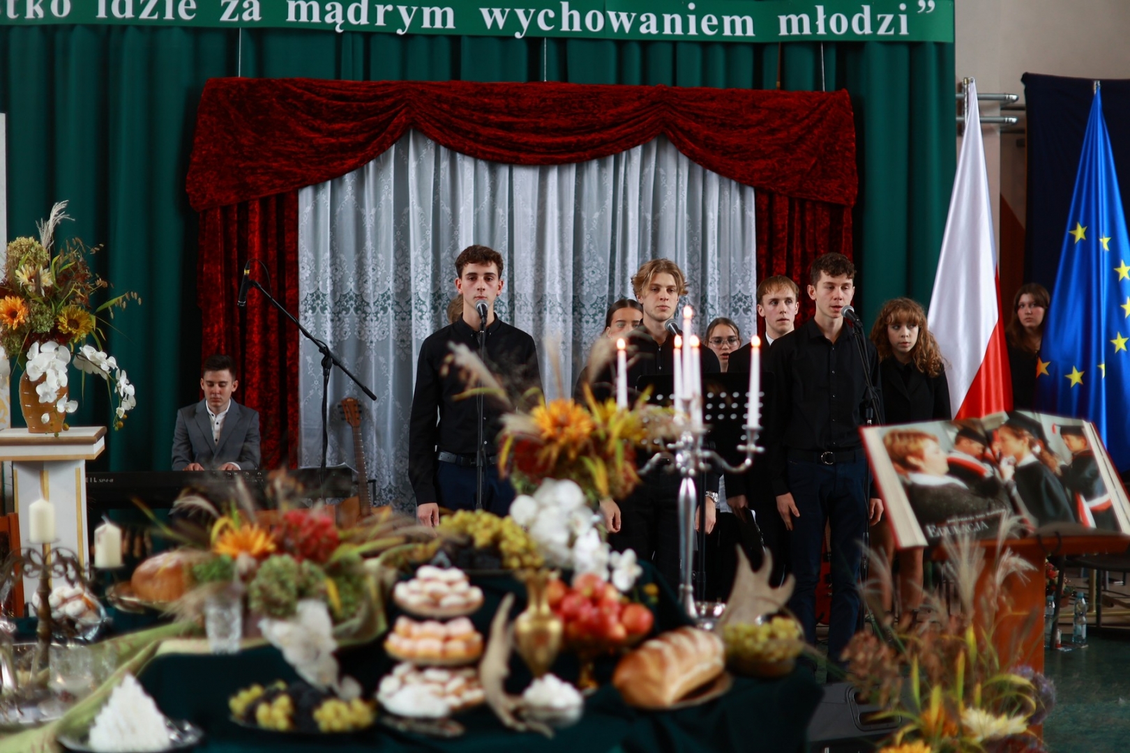 Na zakończenie uroczystości odbyła się wyjątkowa część artystyczna przygotowana przez Szkolne Koło Teatralne. Spektakl pt. „Rozmowy o edukacji” przeniósł zebranych w czasy stanisławowskie – do epoki, w której zrodziła się Komisja Edukacji Narodowej, pierwsze w Europie ministerstwo oświaty.