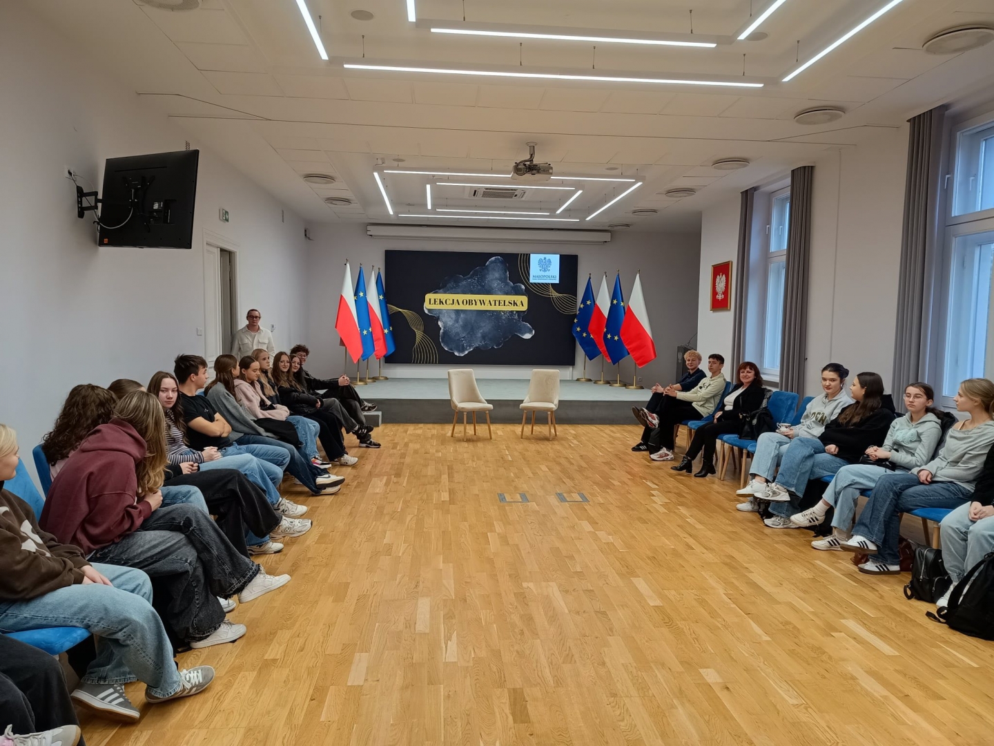 17 października br. uczniowie Liceum Ogólnokształcącego im. M.Kopernika w Brzesku wzięli udział w lekcji obywatelskiej na zaproszenie Wojewody małopolskiego dr. Krzysztofa Jana Klęczara oraz I Wicewojewody Elżbiety Achinger. Podczas niezwykle interesujących zajęć uczniowie poznali kompetencje poszczególnych jednostek samorządu terytorialnego, ze szczególnym uwzględnieniem kompetencji samorządu wojewódzkiego. W związku z tym młodzież spotkała się także z Marszałkiem województwa Łukaszem Smółką. Podczas spotkania nie zabrakło wymiany zdań na temat perspektyw rozwoju dla młodzieży województwa małopolskiego.