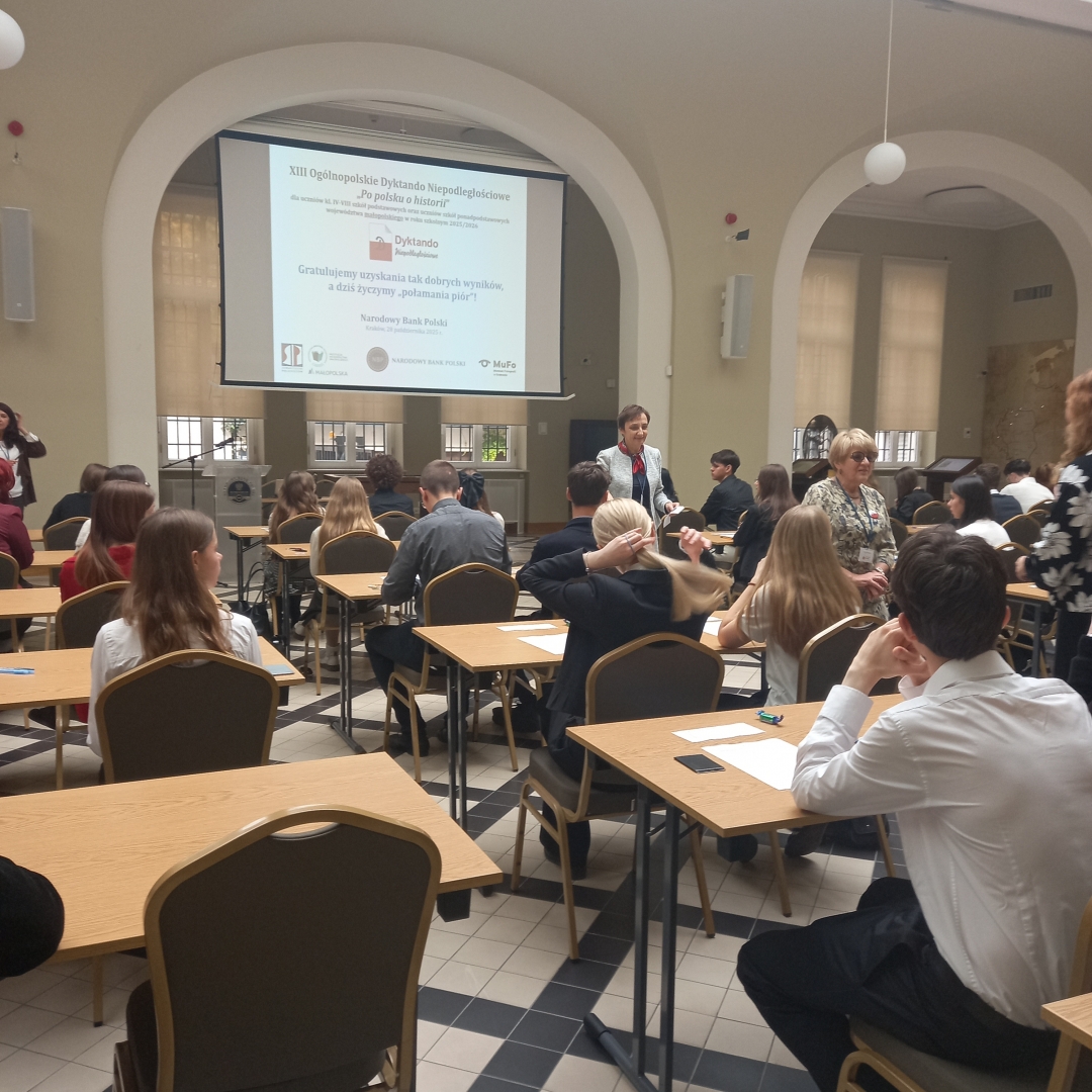 28 października 2025 roku w Centrum Wystawowym Narodowego Banku Polskiego odbył się etap wojewódzki XIII Ogólnopolskiego Dyktanda Niepodległościowego „Po polsku o historii”. Zgromadzonych powitali organizatorzy – Stowarzyszenie Polonistów, którzy pogratulowali uczniom zdobycia tak wysokiego wyniku, zwrócili się też do licznie przybyłych, nauczycieli j. polskiego. Im z kolei podziękowali za towarzyszenie swoim podopiecznym oraz obecność podczas konkursowych zmagań, która podnosi rangę zawodów i mobilizuje do uzyskania jak najlepszych wyników. Tematem XIII dyktanda była historia fotografii. Poziom wymagań był wysoki. Wyniki – 12 listopada. Zespół Szkół Technicznych i Branżowych w Brzesku reprezentowali uczniowie klasy 4TMe: Kamil Baniak i Alan Skrzyński. Kamilowi i Alanowi gratulujemy.