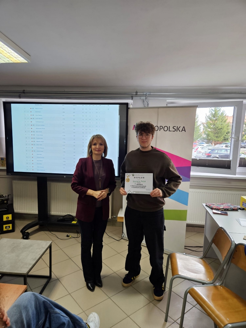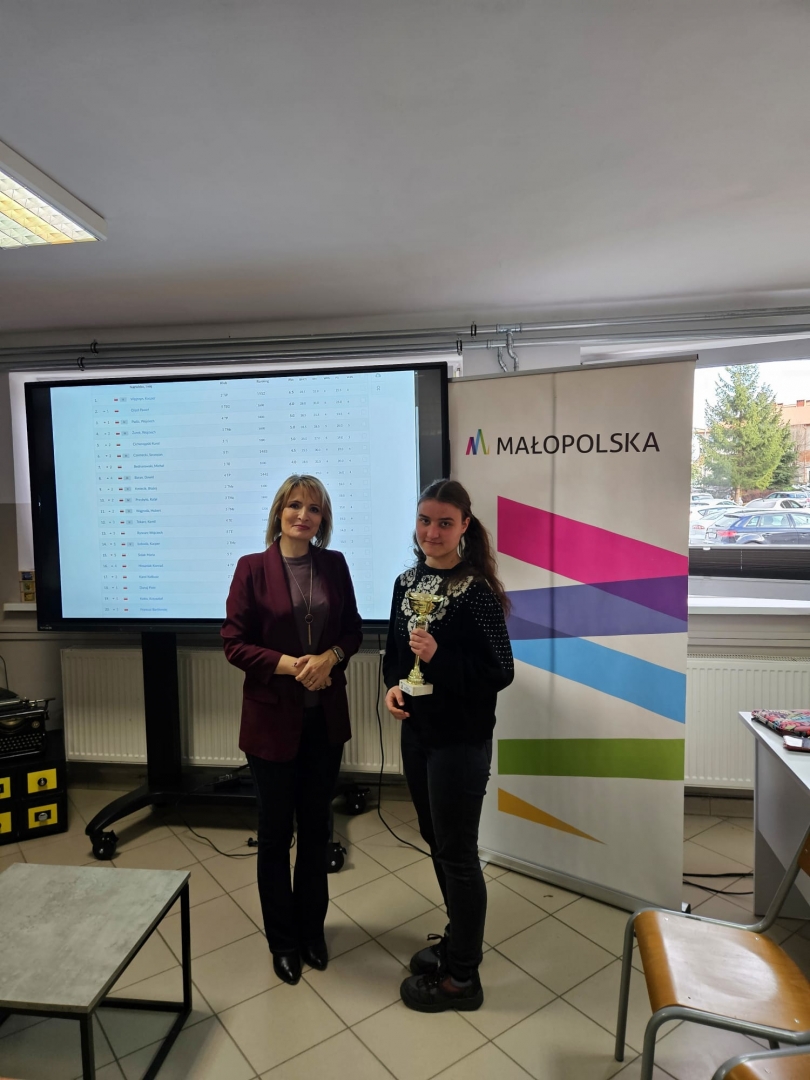 Mistrzem Szkoły, ze znakomitym wynikiem 6.5/7, został uczeń klasy 2 TiP Kacper Węgrzyn, 2. miejsce zajął Paweł Orzeł z klasy 5 TBG, a na najniższym stopniu podium stanął Wojciech Puzia z klasy 4 TP. Natomiast Mistrzynią Szkoły została Maria Solak z klasy 5 Ti.