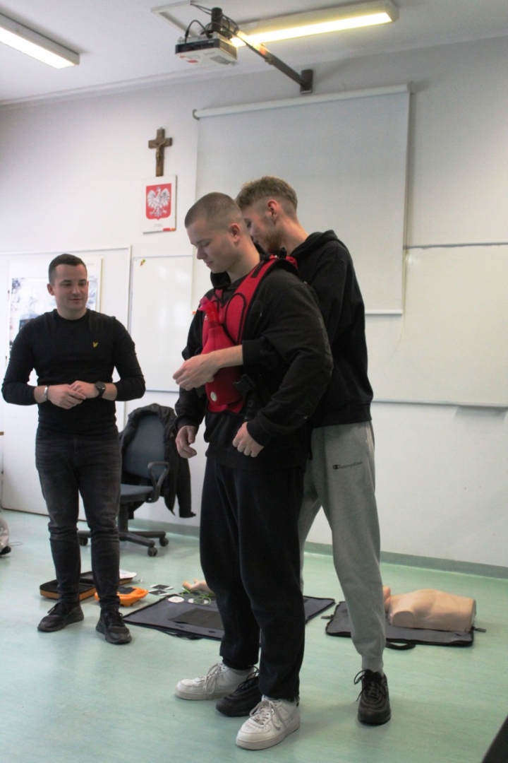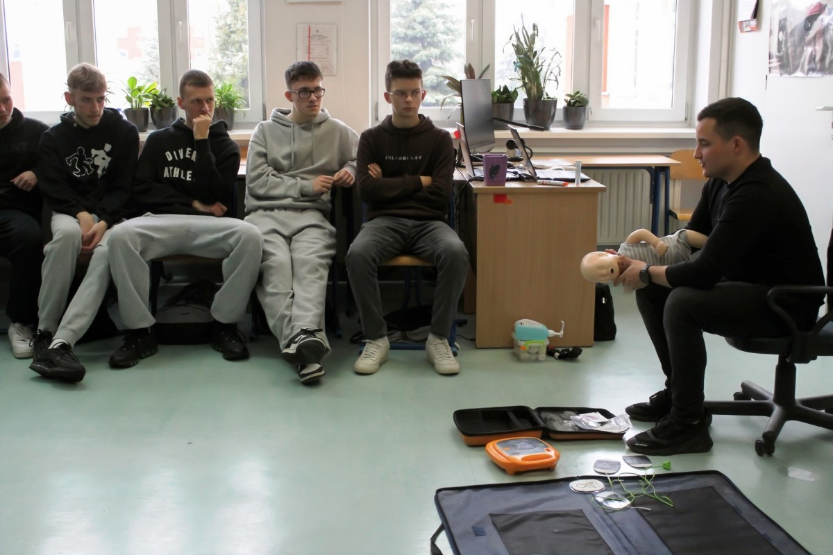 Podczas zajęć młodzież zdobyła wiedzę dotyczącą postępowania w sytuacji nagłej reakcji alergicznej oraz udzielania pierwszej pomocy w nagłych zdarzeniach zagrażających zdrowiu i życiu człowieka. Program szkolenia obejmował zarówno część teoretyczną, jak i praktyczną – uczniowie ćwiczyli m.in. ułożenie poszkodowanego, udrażnianie dróg oddechowych, resuscytację krążeniowo-oddechową, obsługę defibrylatora AED, a także zakładanie opasek uciskowych i opatrunków.