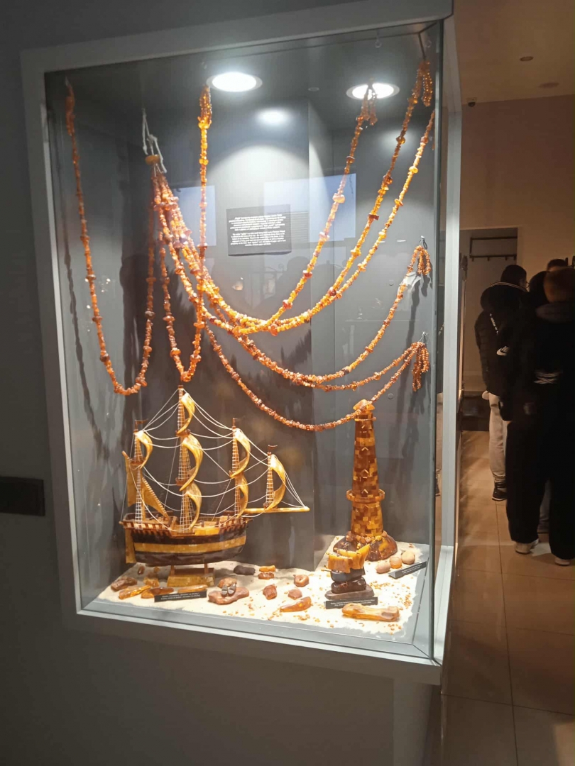 Kolejnym punktem programu było zwiedzanie Muzeum Bursztynu. Wystawa „Bursztyn – jego piękno i dzieje” ukazuje naturalną urodę bursztynu bałtyckiego i dostarcza cennej wiedzy na temat powstawania i historii obróbki. Na szczególną uwagę zasługuje niecodzienna aranżacja: w gablotach obok siebie znajdują się naturalne formy tej skamieniałej żywicy zestawione z inspirującymi przykładami ich wykorzystania w sztuce współczesnej oraz unikatowe bryłki z inkluzjami.