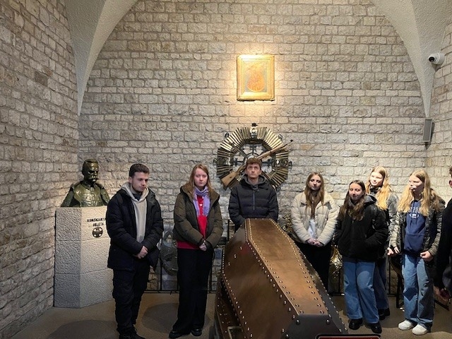 gdzie spoczywa para prezydencka Maria i Lech Kaczyńscy, którzy zginęli tragicznie w katastrofie w Smoleńsku, a także patron Naszego Technikum marszałek Józef Piłsudski i złożone jest serce jego matki. Maturzyści chętnie wyruszyli do Krypty Wieszczów, gdzie oddali cześć wybitnym twórcom romantyzmu: Adamowi Mickiewiczowi, Juliuszowi Słowackiemu, Cyprianowi Kamilowi Norwidowi oraz Fryderykowi Chopinowi.
