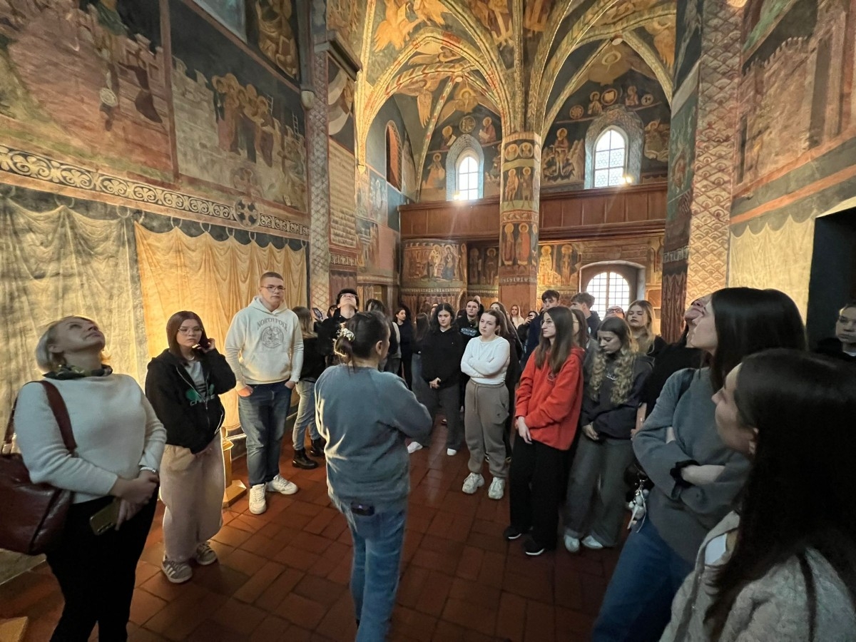 Kolejnym etapem był Zamek Lubelski, jeden z najcenniejszych zabytków miasta. Uczniowie zwiedzili również słynną Kaplicę Trójcy Świętej, znaną z zachwycających fresków łączących tradycję bizantyjską i gotycką. Ta wyjątkowa przestrzeń zrobiła na wszystkich ogromne wrażenie.