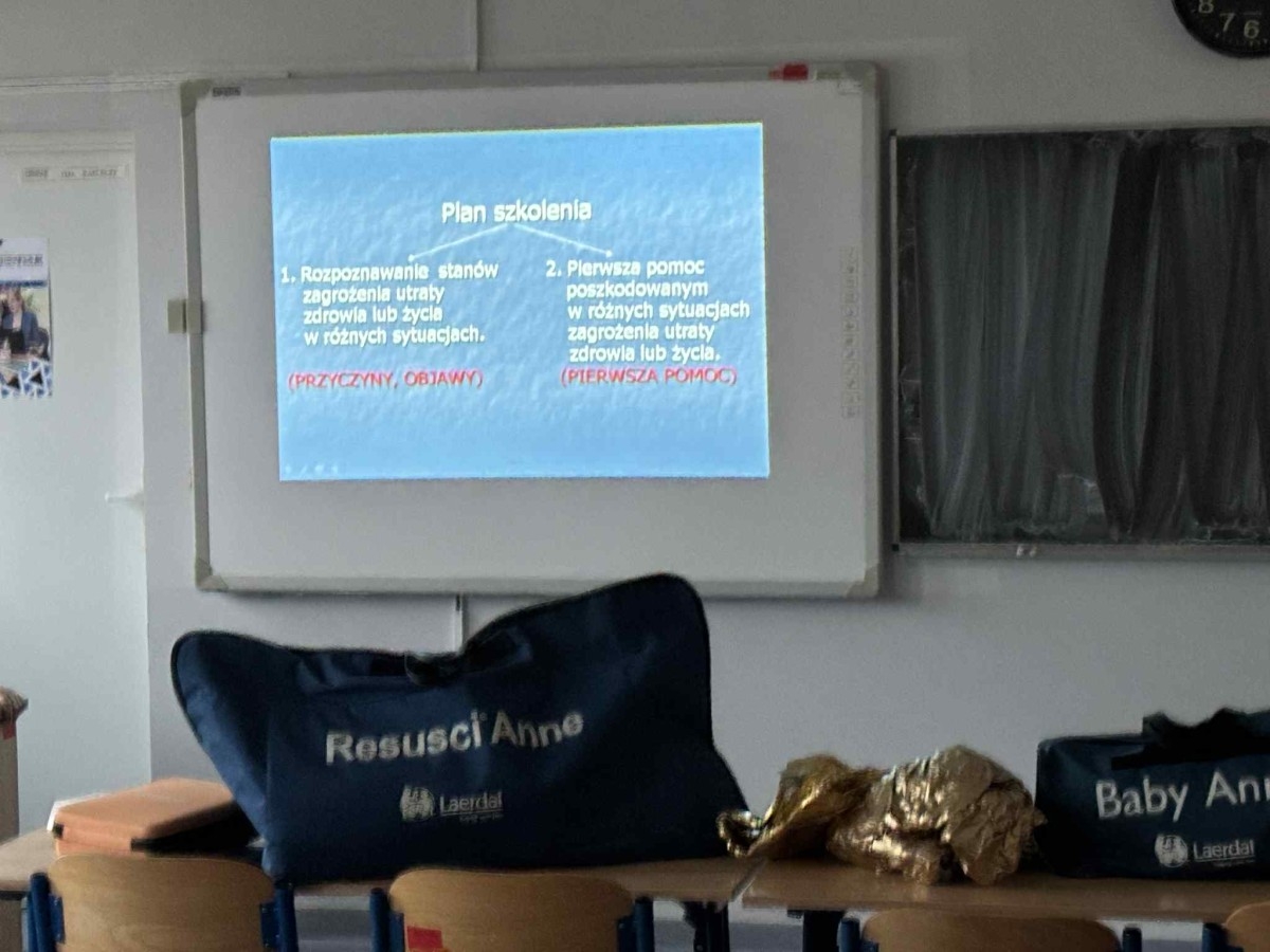 Ważnym elementem przygotowania do praktyk zagranicznych były zajęcia z pierwszej pomocy, w czasie których mieliśmy okazję powtórzyć naszą wiedzę na temat ratowania zdrowia i życia. Na początku skupiliśmy się na tym, dlaczego udzielanie pomocy jest tak ważne i kiedy powinniśmy reagować. Później przeszliśmy do omawiania najczęściej spotykanych sytuacji, z którymi każdy z nas może zetknąć się podczas pobytu za granicą. Powtórzyliśmy manewry ratownicze takie jak pozycja boczna bezpieczna oraz RKO’.