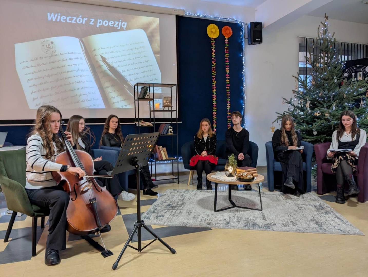 16 grudnia br. w przedświątecznym „tygodniu projektów" w Liceum Ogólnokształcącym im. M.Kopernika w Brzesku odbył się wieczór poetycki, podczas którego uczennice i uczniowie szkoły prezentowali swoje literackie i muzyczne zdolności. Spotkanie prowadziła Maja Obijalska - autorka wierszy urzekających intelektualną dojrzałością i pięknem języka. W spotkaniu wzięli także udział: Magdalena Wójcik, Sonia Węgrzyn, Kamila Hebda, Amelia Rzepa, Amelia Majcherczyk, Kamila Padło i Dominik Kłeczek. Młodzież zaprezentowała swoje autorskie wiersze, wzruszające recytacje oraz klimatyczne wykonania muzyczne, wprowadzając wszystkich w magiczny, przedświąteczny nastrój