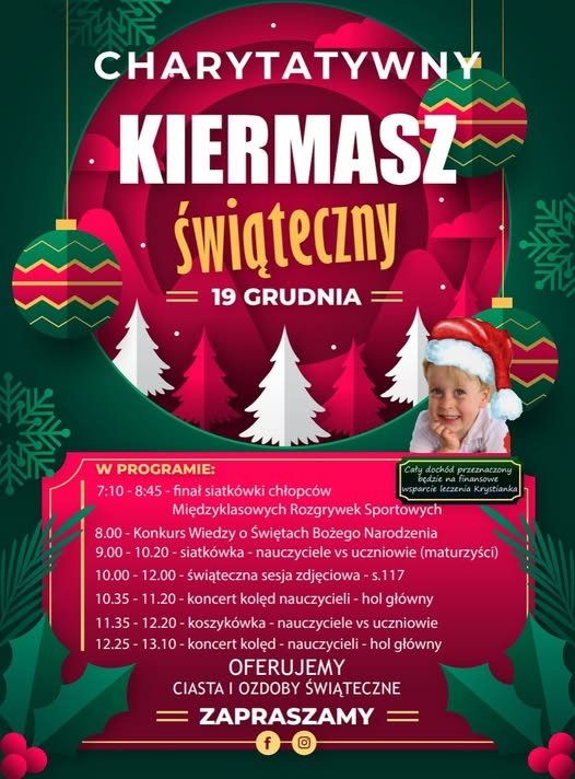 W kilku szkołach powiatu brzeskiego ważnym akcentem było budowanie wsparcia dla czteroletniego Krystiana, który wymaga kosztownego leczenia i stałej rehabilitacji. W brzeskim Zespole Szkół Technicznych i Branżowych uczniowie wraz z nauczycielami zorganizowali świąteczny kiermasz wypieków i ozdób, z którego cały dochód przeznaczono na sfinansowanie terapii, turnusów rehabilitacyjnych oraz specjalistycznego sprzętu dla chłopca. Akcja była częścią szerszej, lokalnej mobilizacji na rzecz dziecka. Również Technikum im. Józefa Piłsudskiego w Brzesku włączyło się w tę pomoc. W szkole przeprowadzono akcję „I Ty możesz zostać św. Mikołajem”, połączoną z kiermaszem charytatywnym. Dochód z wydarzenia zasilił zbiórkę na leczenie i rehabilitację Krysiana. To jedna z tych inicjatyw, które już się zakończyły, ale jej efekt, realne wsparcie finansowe, pozostaje. A zbiórka trwa, bo potrzeby dziecka wymagają długofalowego wsparcia.