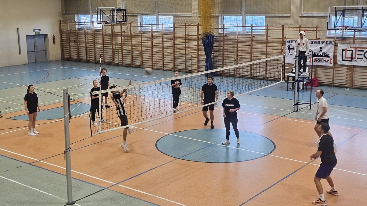 Wydarzenie rozpoczęło się od emocjonujących meczów sportowych, które przyciągnęły na szkolną halę tłumy kibiców, a uczniowie i nauczyciele rywalizowali w przyjaznej, pełnej uśmiechu atmosferze. Pierwszy mecz – Finał Siatkówki Chłopców w ramach Międzyklasowych Rozgrywek Sportowych: klasa 5IT vs 3 TL, wygrali informatycy i tym samym zostali Mistrzami Turnieju. Nie mniejsze zainteresowanie wzbudził mecz siatkówki nauczyciele kontra maturzyści. To spotkanie pełne było uśmiechu, żartobliwych docinków i serdecznej rywalizacji. Zakończył się wynikiem 2:1 dla nauczycieli. Kolejnym sportowym akcentem był mecz koszykówki nauczyciele vs uczniowie. Dynamiczne akcje i efektowne rzuty do kosza charakteryzowały to spotkanie, które zakończyło się wynikiem 19:11 dla nauczycieli. Sportowe zmagania stały się ważną częścią kiermaszu, pokazując, że pomaganie może iść w parze z aktywnością i radością. Dziękujemy nauczycielom wychowania fizycznego za zorganizowanie rozgrywek.