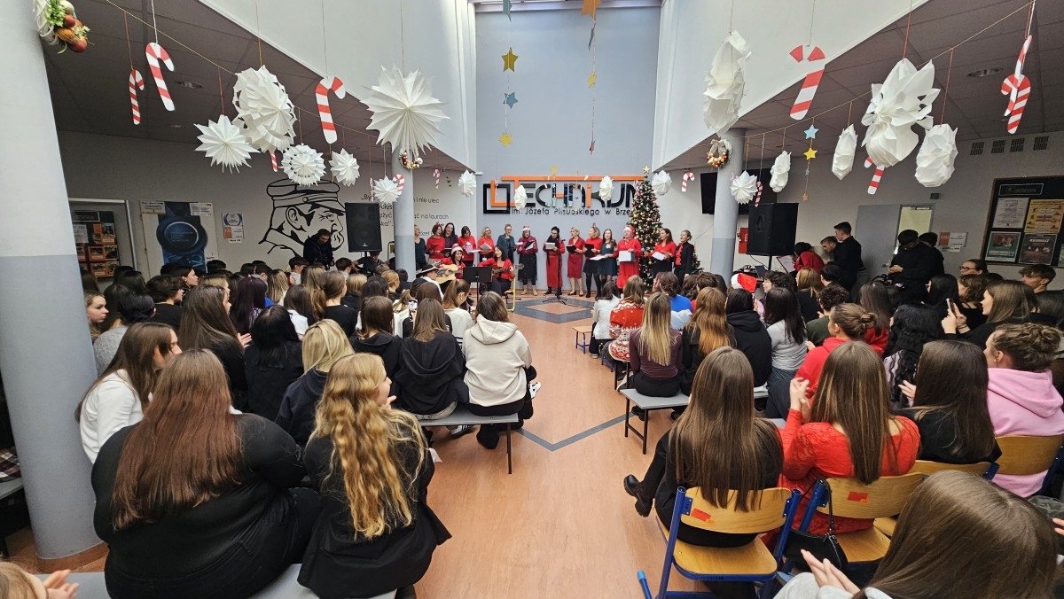Dla miłośników wiedzy Samorząd Uczniowski wraz z opiekunem p. Joanna Barnaś przygotował konkurs wiedzy o Świętach zatytułowany „Boże Narodzenie bez granic” na zasadach 1 z 10. Wzięło w nim udział 8 dwuosobowych drużyn. Pytania dotyczące tradycji bożonarodzeniowych, zwyczajów i symboliki Świąt wywoływały wiele emocji i radosnej rywalizacji. Dotyczyły obyczajów w Polsce i na świecie, pojawiały się zagadnienia religijne, ze świata sztuki i kultury. W ostatecznej rozgrywce III miejsce zajęły uczennice klasy 2 FT, II miejsce drużyna z klasy 5 RT, a I miejsce wywalczyły dziewczęta z klasy 3 RT. Wszyscy, którzy znaleźli się na podium otrzymali słodkie niespodzianki. W jury zasiedli: p. dyrektor Grażyna Piotrowska, p. Dorota Ogiela i z ramienia SU Kamil Musiał. Konkurs udowodnił, że Święta to nie tylko prezenty, ale także bogata tradycja, którą warto pielęgnować i przekazywać dalej.
