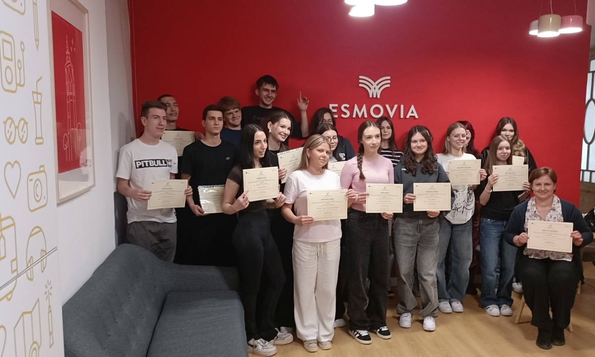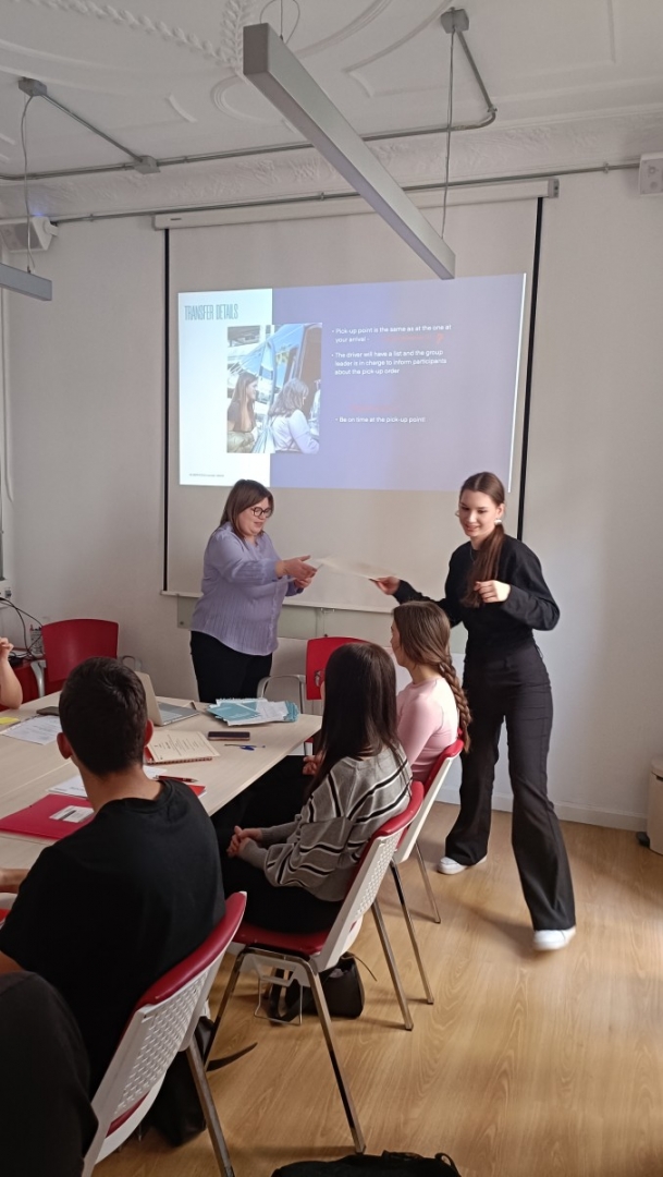 ‘Zagraniczne praktyki zawodowe w ramach programu Erasmus+ dobiegły końca. Ostatni tydzień pobytu był bardzo intensywny i pełen wrażeń. Kilka dni przed wyjazdem spotkaliśmy się w biurze organizacji wspierającej Esmovia z Clemence, naszą opiekunką.